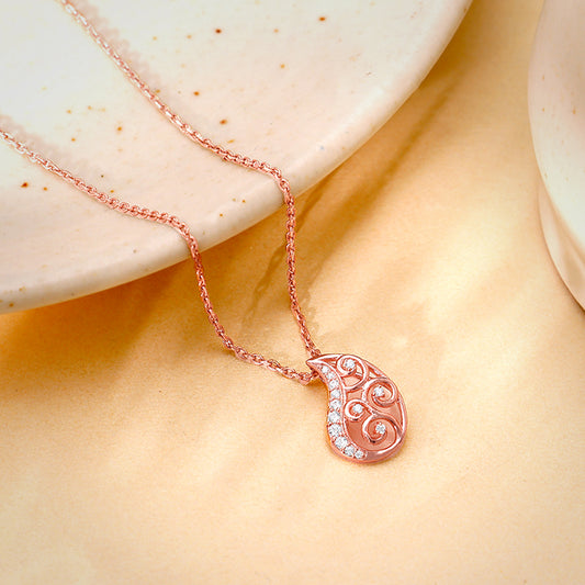 Rose Gold Charming Paisley Pendant With Link ChainMetal:Colour:Rose GoldBuy NowCustomizeRegular price ₹3,199Sale price ₹3,199 Regular priceUnit price / per₹7,099Rose Gold Charming Paisley Pendant With Link Chain