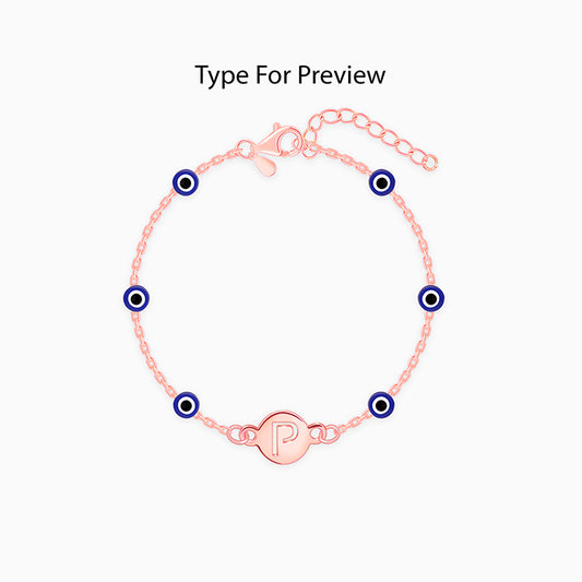 Rose Gold Personalised Evil Eye Initial BraceletMetal:Colour:Rose GoldBuy NowCustomizeRegular price ₹1,899Sale price ₹1,899 Regular priceUnit price / per₹4,199Rose Gold Personalised Evil Eye Initial Bracelet