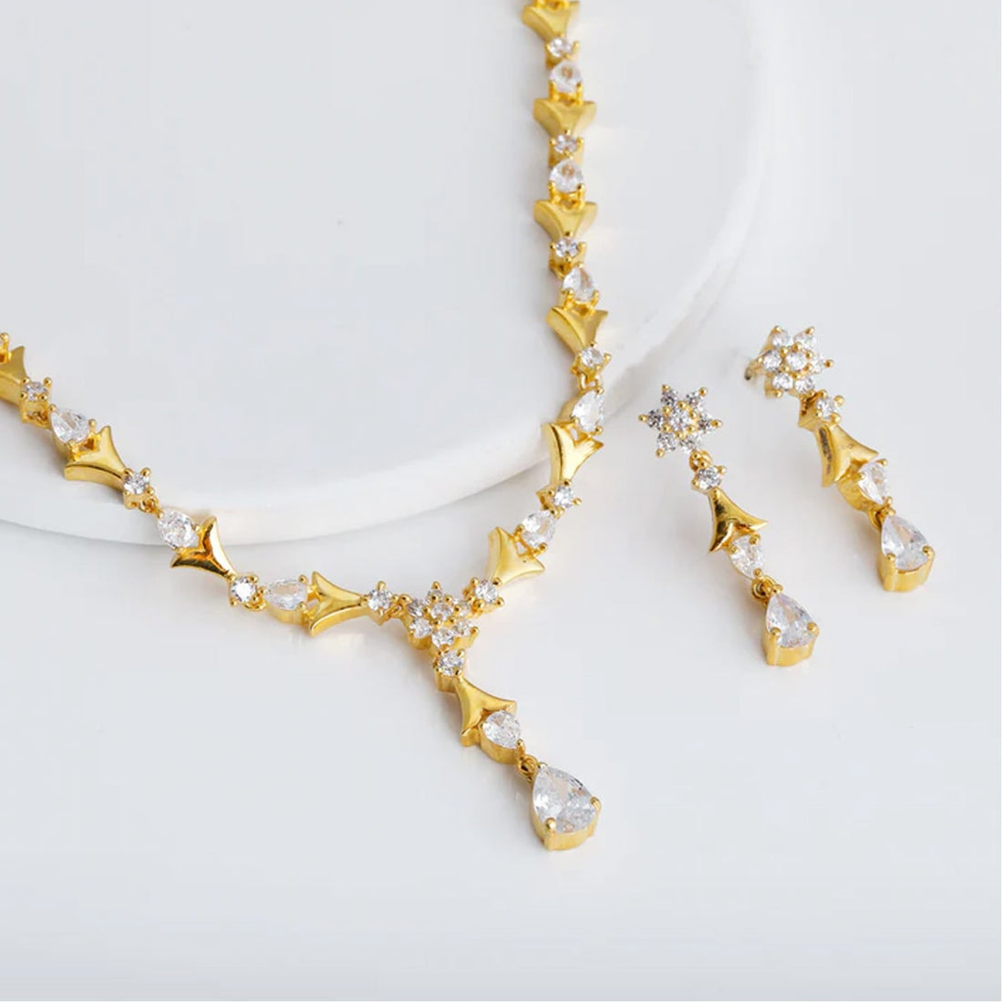 Necklace: A delicate chain with a flatteringly designed single stone pendant that catches light with every movement of the wearer. The design is simple enough for casual settings yet elegant enough to wear on a formal day.