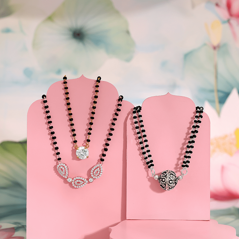 When choosing between gold and 925 silver for your Mangal Sutra, gold remains the most traditional and widely used metal. 925 Silver, known for its luxurious finish and durability, has gained popularity in recent years. Gold pairs beautifully with diamonds and gemstones, offering a modern, stylish look. Both metals have their unique appeal—gold is classic and timeless, while silver offers superior strength and a contemporary feel. Consider your personal style, budget, and long-term durability when making your choice.