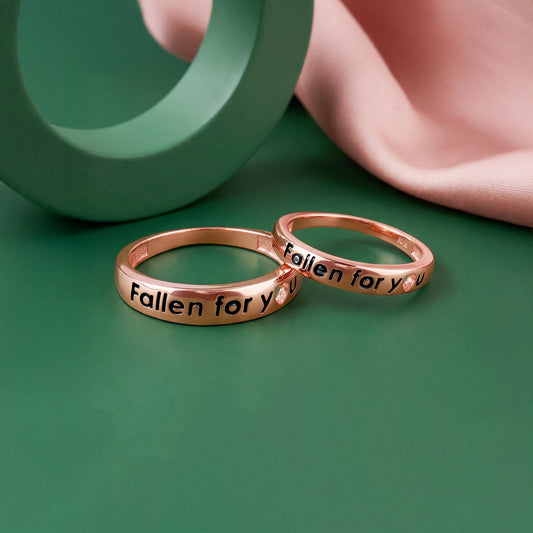 Rose Gold Fallen For You Couple RingsRing Size:12Metal:Colour:Rose GoldBuy NowCustomizeRegular price ₹3,599Sale price ₹3,599 Regular priceUnit price / per₹7,899Rose Gold Fallen For You Couple Rings