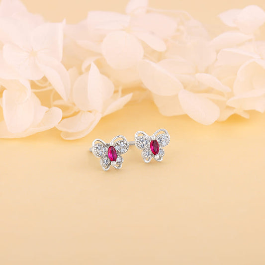 Silver Pop Pink Studded Butterfly Studs