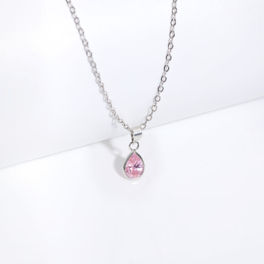 Silver Pink Drop Pendant With Link ChainMetal:Colour:SilverBuy NowCustomize
