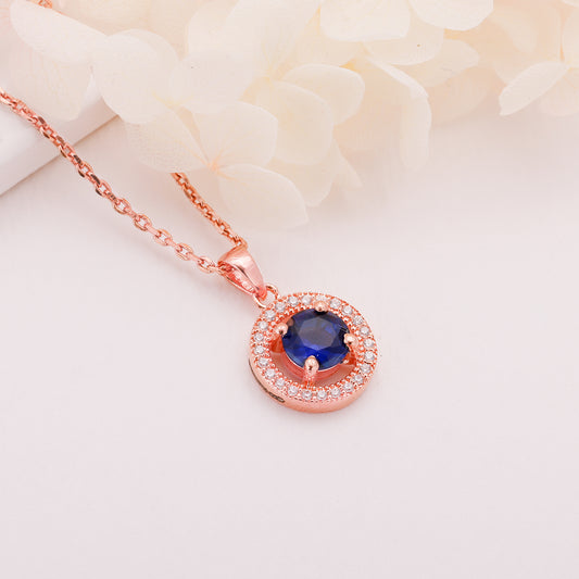 Rose Gold Blue Halo Pendant With Link ChainMetal:Colour:Rose GoldBuy NowCustomize