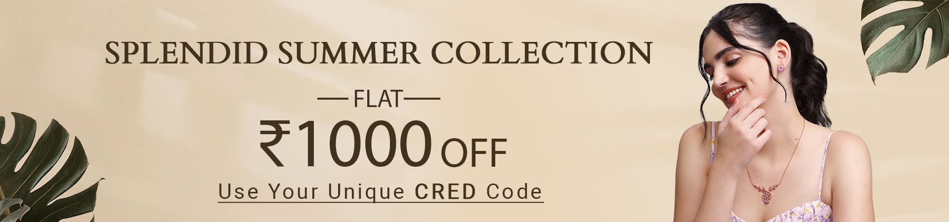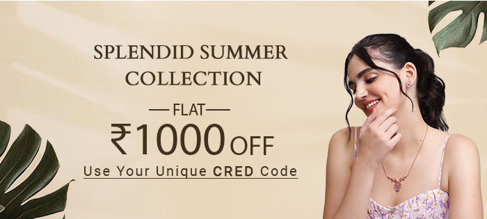 Our Cred Splendid Summer Collection features an array of jewellery that will leave you spoilt for choice. Adorn your neckline with captivating necklaces, each piece telling a unique story. Express your love and commitment with timeless rings that capture the essence of your relationship. Add a touch of glamour to your ensemble with stunning jewellery adorned with precious stones, and let them sparkle like the stars. Explore the world of lab- grown diamonds that combine ethical beauty with undeniable elegance. What's even more splendid? You can enjoy special discounts on your selected jewellery, courtesy of your Cred code.