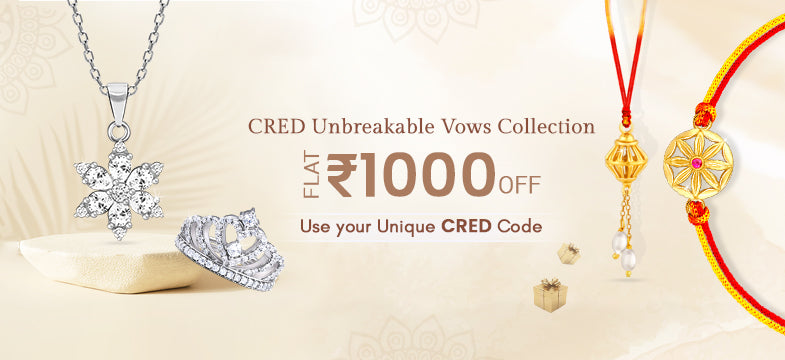 Imagine gazing into a collection where every piece is meticulously crafted to capture your heart. That's precisely what you'll find in our CRED Unbreakable Vows Collection. We've carefully selected a range of jewellery types, each designed to enhance your beauty and charm. From delicate necklaces that grace your neckline with a subtle allure to exquisite rings that whisper tales of love, every piece in this collection is a testament to your unique style. But there's more – we've added the sparkle of stones, the sophistication of lab-grown diamonds, and the timeless appeal of gold and rose gold. And here's the cherry on top: you can use your CRED code to unlock special discounts on these hand picked treasures. It's not just jewellery; it's a love story waiting to be told.