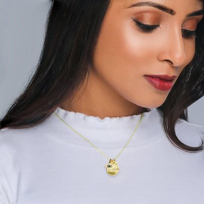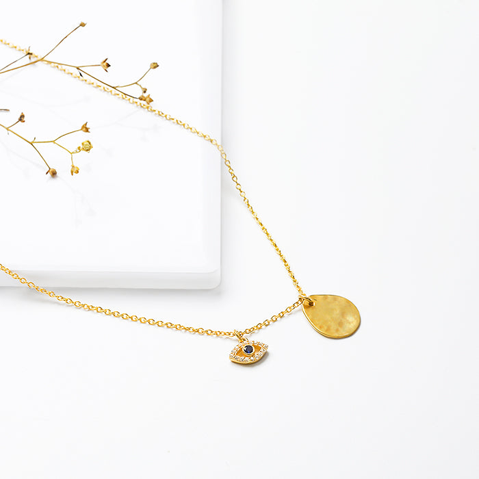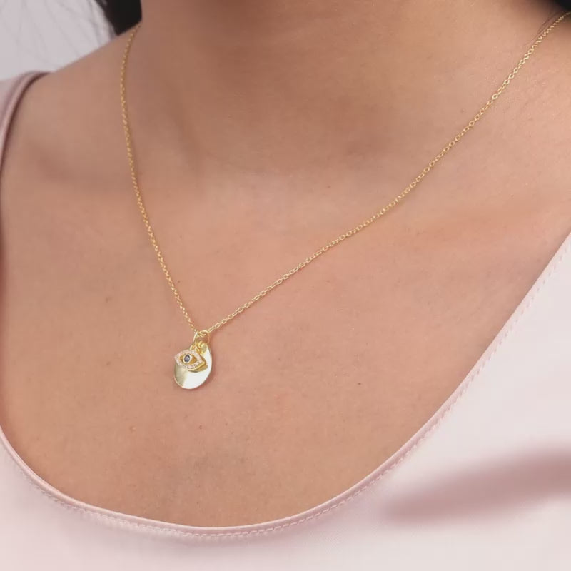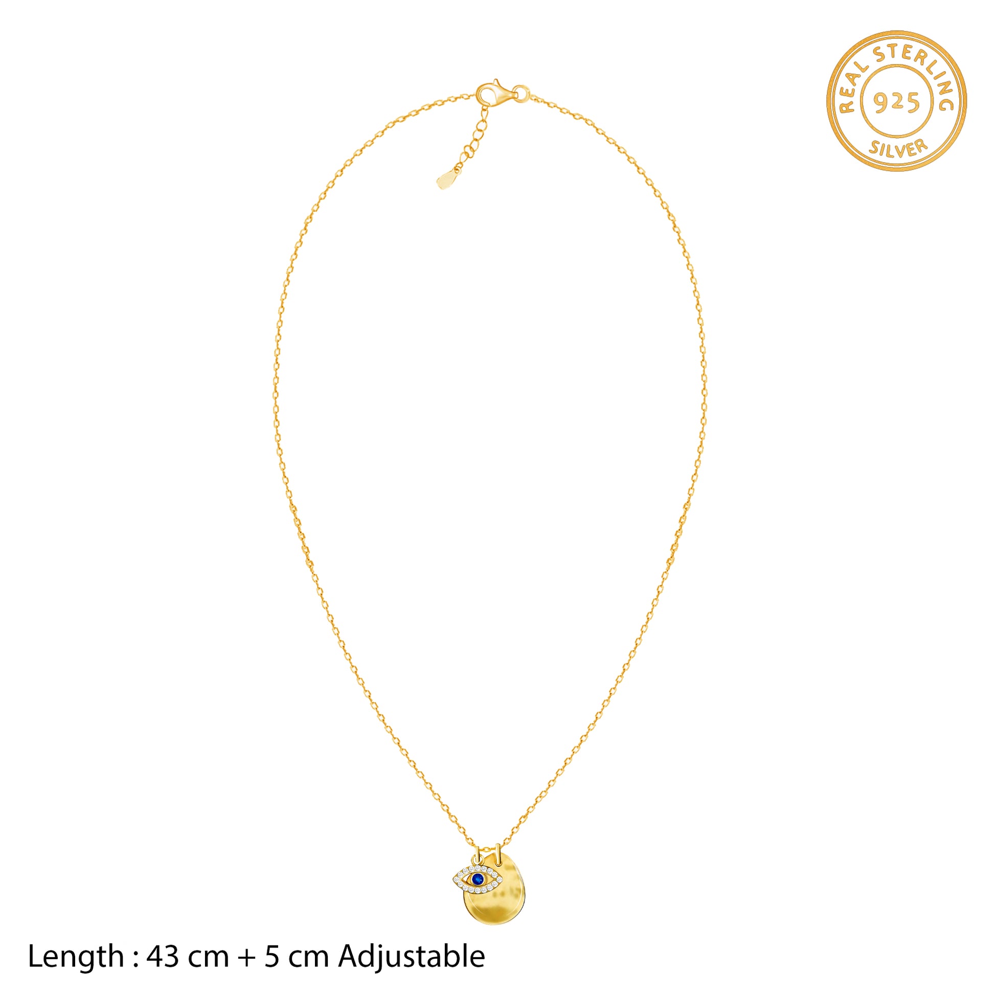 This Gold Plated Stare Of Evil Eye Necklace is handcrafted with love, just for YOU. The evil eye is studded with shiny zircon along with the trinket charm. Unique and lucky at the same time.