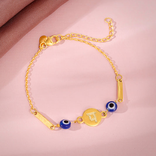 Golden Hindi Initial Evil Eye BraceletMetal:Colour:GoldBuy NowCustomizeRegular price ₹2,099Sale price ₹2,099 Regular priceUnit price / per₹4,699Golden Hindi Initial Evil Eye Bracelet