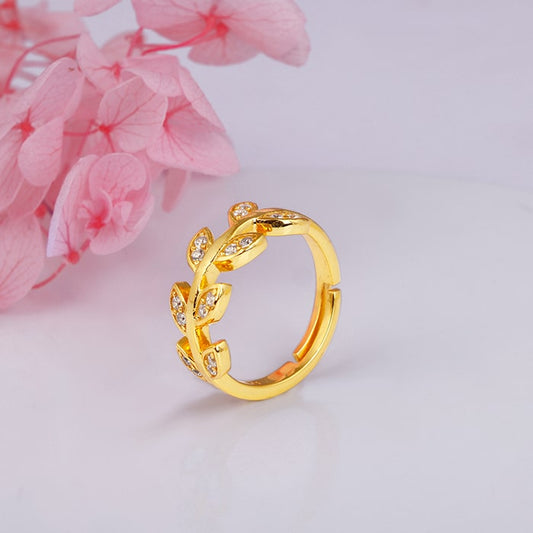 Golden Zircon Studded Leaf RingRing Size:12Metal:Colour:GoldBuy NowCustomize