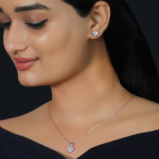 Silver Solitaire Heart Set with Link ChainMetal:Colour:SilverBuy NowCustomize