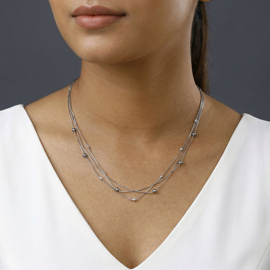 Silver Jennifer Layered Pearl NecklaceMetal:Colour:SilverBuy NowCustomizeRegular price ₹5,099Sale price ₹5,099 Regular priceUnit price / per₹11,199Silver Jennifer Layered Pearl Necklace
