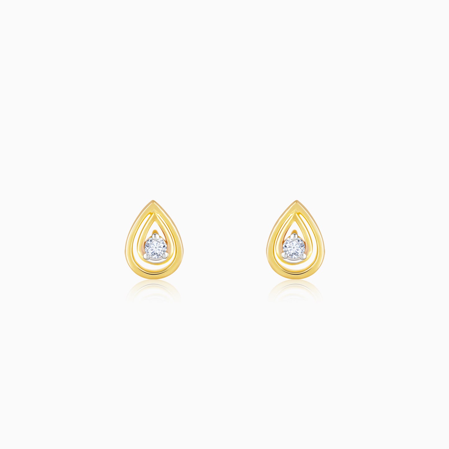 These earrings have a drop-shaped motif encrusted in diamonds within a plain gold drop motif.