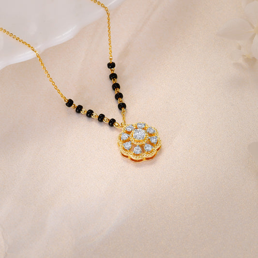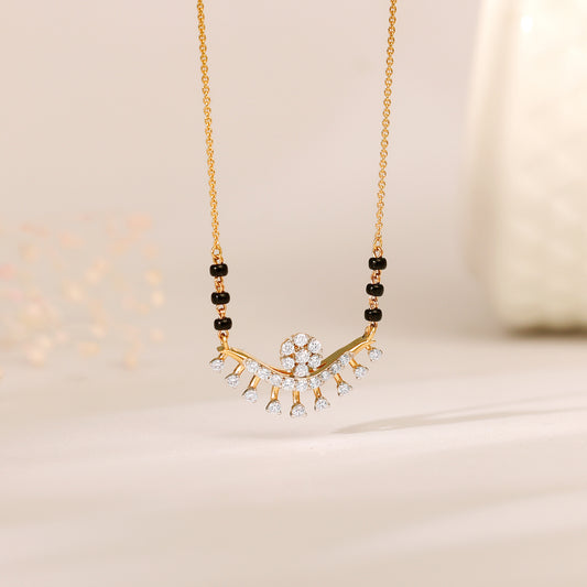 18k Gold Floral Flare Diamond MangalsutraMetal:18KColour:Yellow GoldBuy NowCustomizePURE GOLD