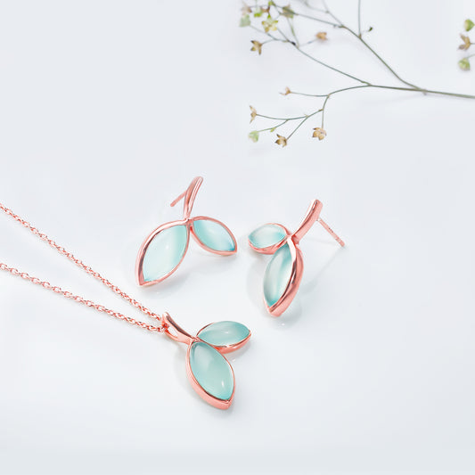 Rose Gold Aqua Dual Chalcedony Leaf SetMetal:Colour:Rose GoldBuy NowCustomize