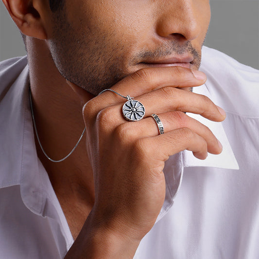 Oxidised Silver Classic Omkar Band For HimRing Size:12Metal:Colour:Oxidised SilverBuy NowCustomizeRegular price ₹4,799Sale price ₹4,799 Regular priceUnit price / per₹9,299Oxidised Silver Classic Omkar Band For Him