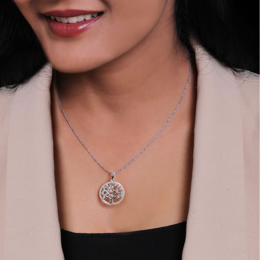 Silver Zircon Tree of Life Pendant with Link ChainMetal:Colour:SilverBuy NowCustomizeRegular price ₹2,699Sale price ₹2,699 Regular priceUnit price / per₹5,999Silver Zircon Tree of Life Pendant with Link Chain