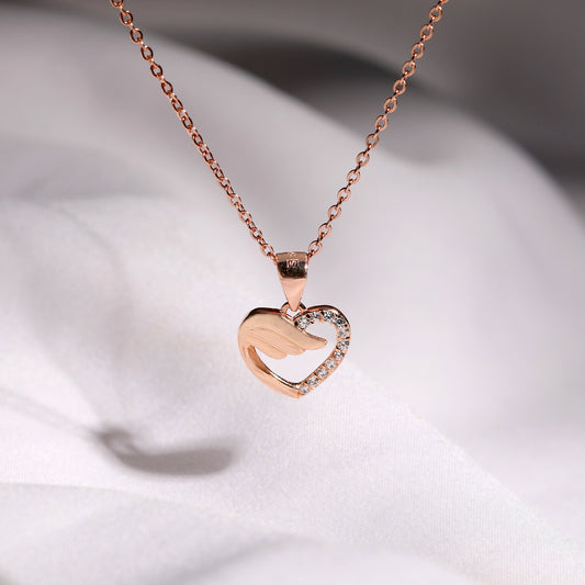 Rose Gold Winged Heart Pendant with Link ChainMetal:Colour:Rose GoldBuy NowCustomizeRegular price ₹3,199Sale price ₹3,199 Regular priceUnit price / per₹7,099Rose Gold Winged Heart Pendant with Link Chain