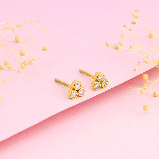 Golden Three-Stoned Stud EarringsMetal:Colour:GoldBuy NowCustomize