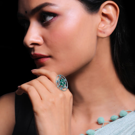 4.8 ★ | 10Regular price ₹2,199Sale price ₹2,199 Regular priceUnit price / per₹4,899Silver Emerald Green Halo Stud Earrings