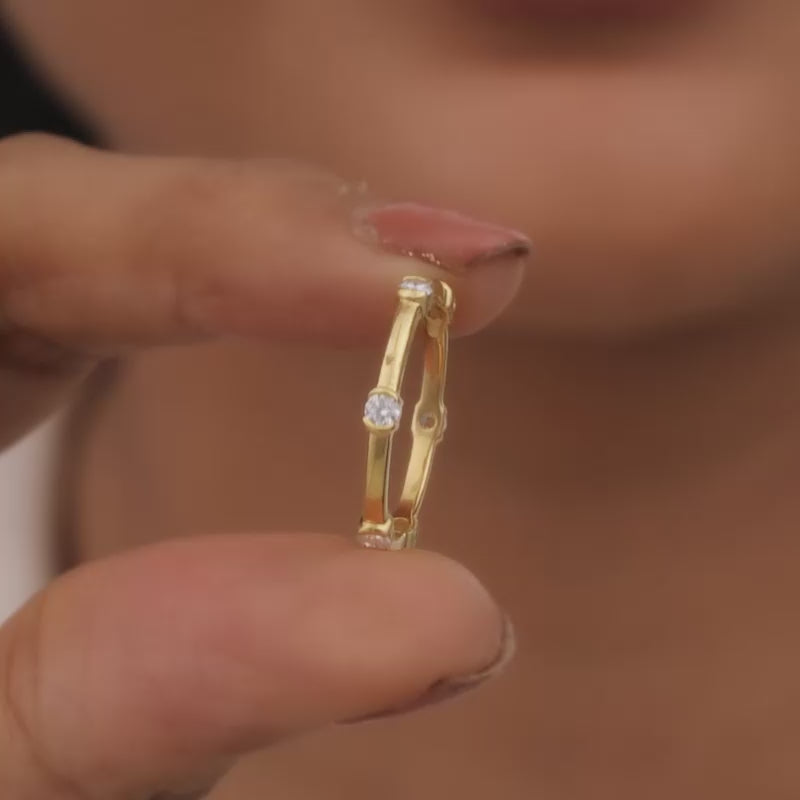 The Gold Heavenly Elegance Diamond Ring is inspired by the soft glow of chandeliers illuminating the graceful movements of dancers gliding across a polished marble floor.