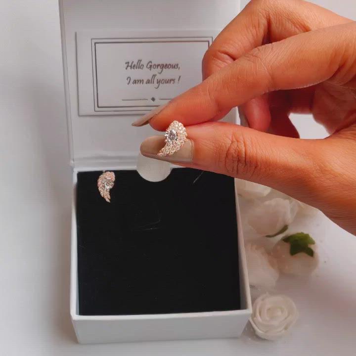 Aayesha’s Rose Gold Wing Studs have been handcrafted with love, for all our amazing DIVAs. Shimmering zircon feathers on Rose Gold wings give these studs a truly ethereal feel.
