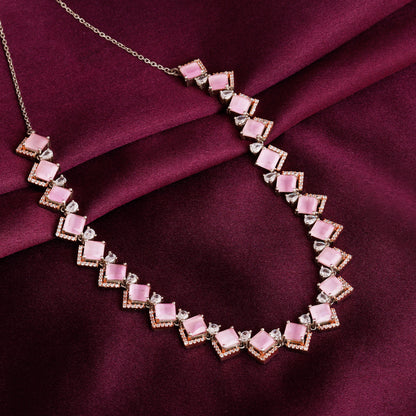 This necklace has an alternate placement of dazzling zircons amidst the coloured stones giving it an ethereal look.