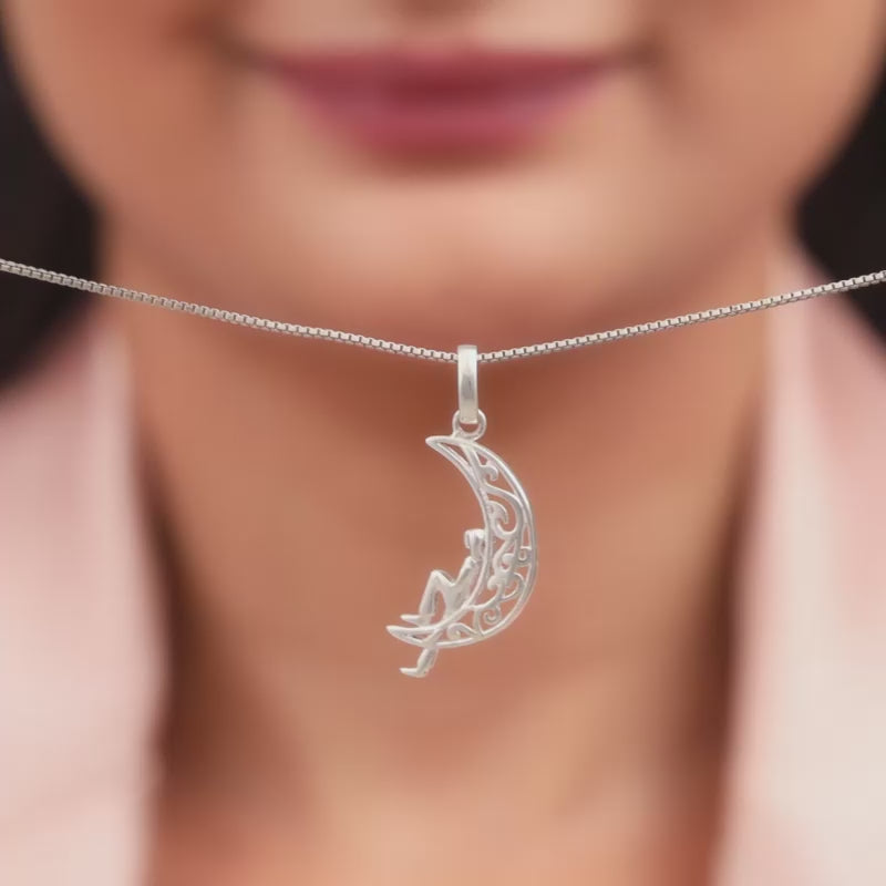 YOU work hard, too hard if we're being honest. YOU deserve a break. If not a long one, then at least a short one that lets you relax. Inspired by our desire to ensure YOU relax, comes this Oxidised Silver Unwind Moon Pendant. Why the moon? Because we think it's pretty, duh!