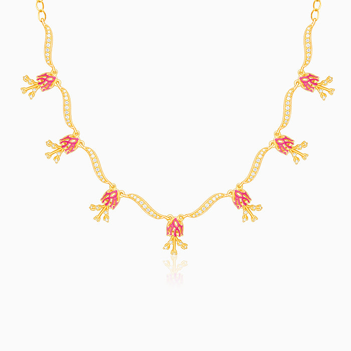 This golden necklace has a Brahma Kamal-inspired motif studded with zircons and enamel. Celebrate the beauty of nature's rarest blooms with GIVA and Bhumi Pednekar - The Bhumi Collection.
