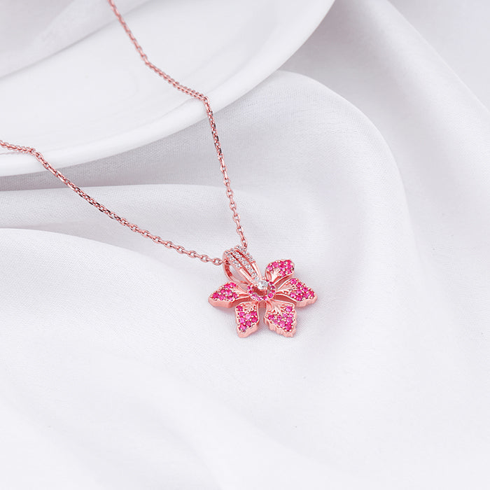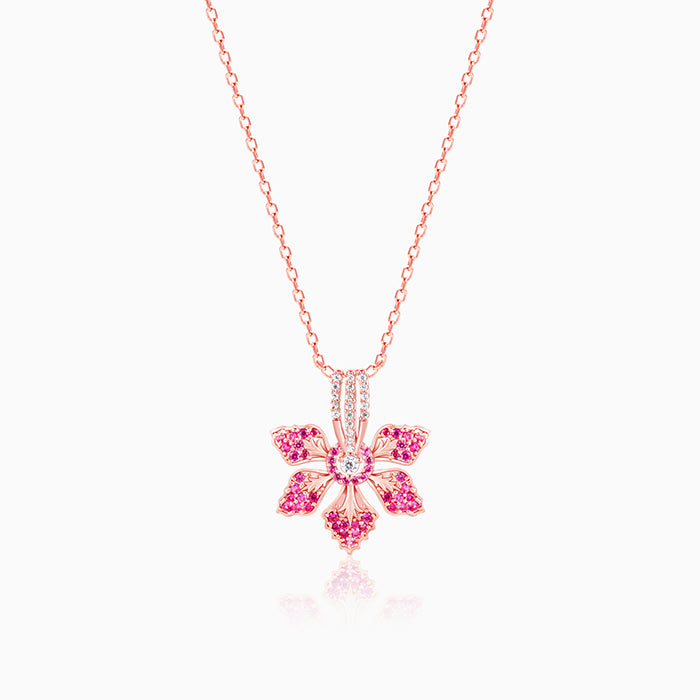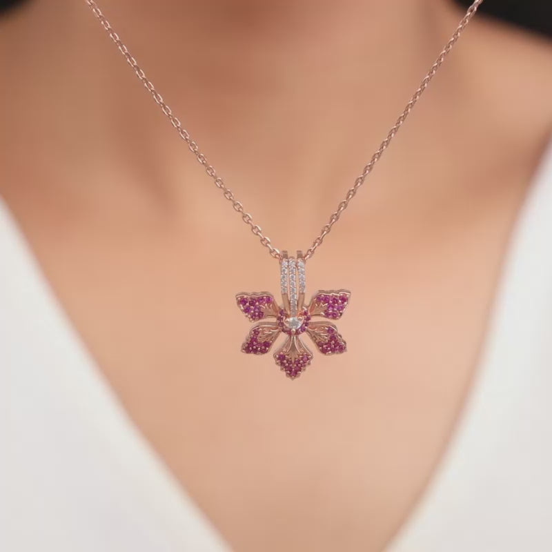 This rose gold pendant with link chain is inspired by a Mountain Ebony flower, set with coloured pink stones and zircons. Celebrate the beauty of nature's rarest blooms with GIVA and Bhumi Pednekar's new jewellery line - The Bhumi Collection.