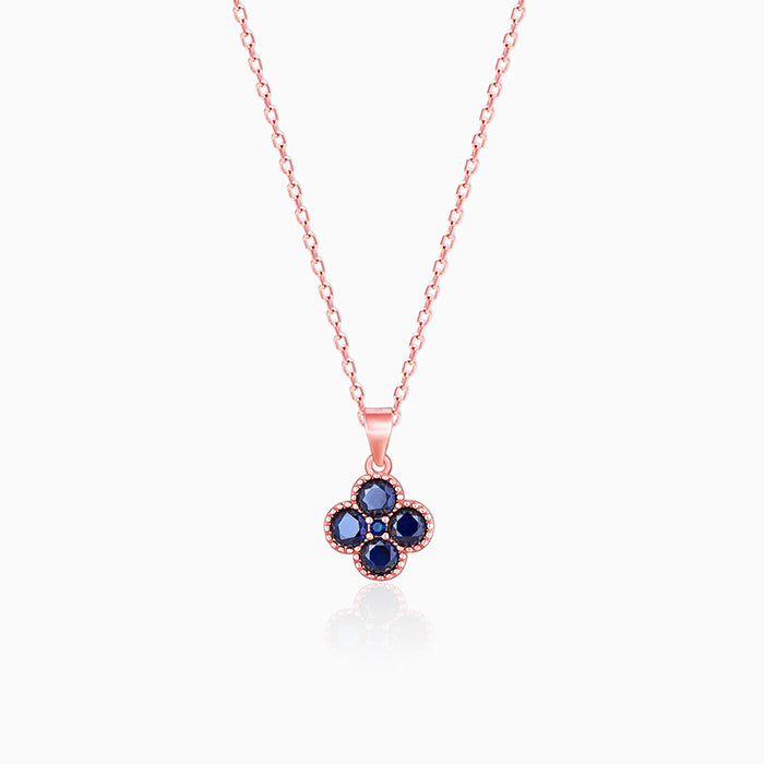 The Rose Gold Blue Clover Pendant has a clover pendant with black coloured stones and rose gold finish.