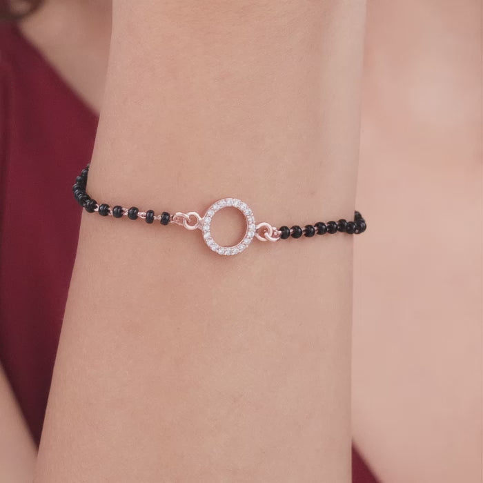 The Rose Gold Circle of Life Mangalsutra Bracelet is inspired by the love between a newlywed couple trying to figure out life together.