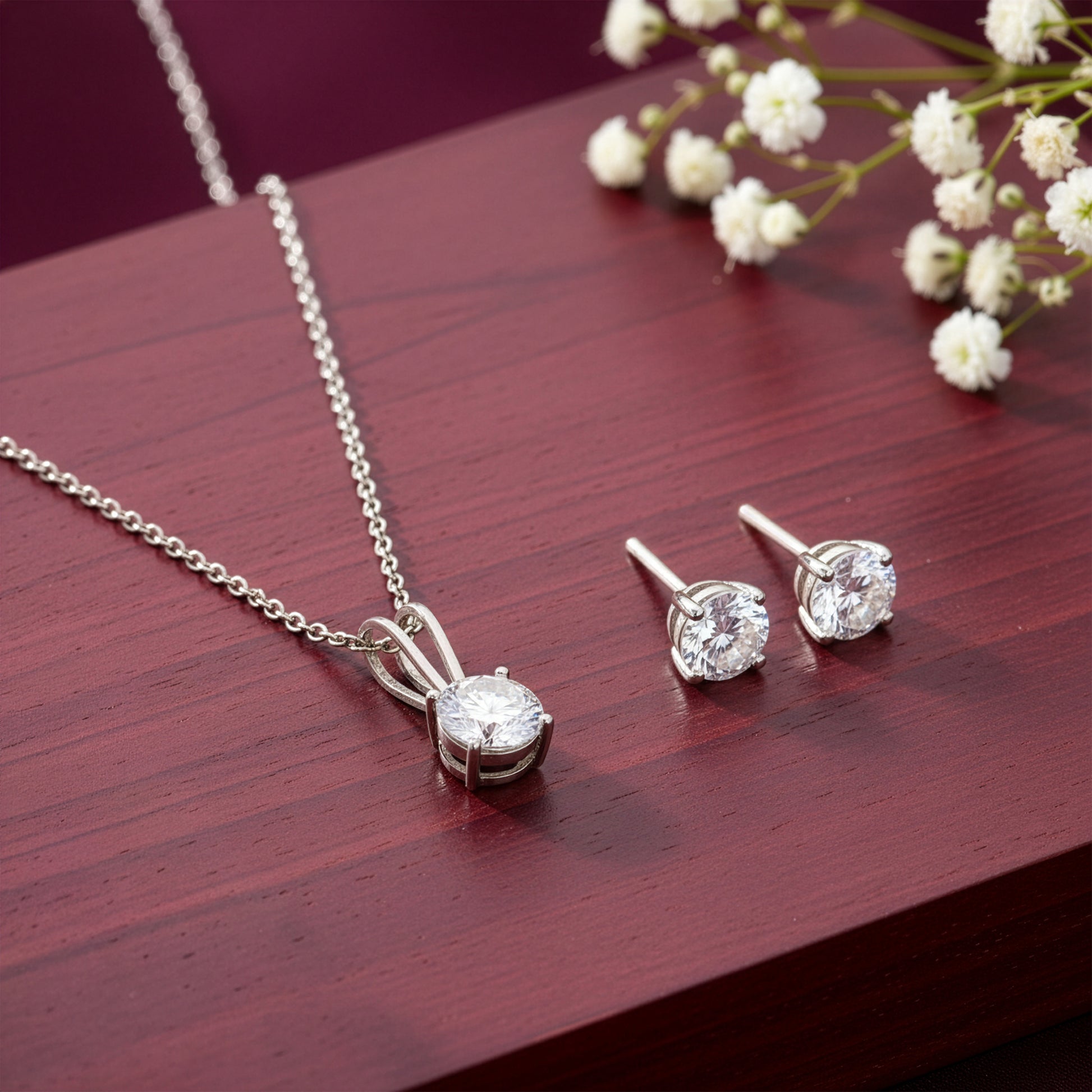 This silver set has a single-stone big zircon pendant and earrings.