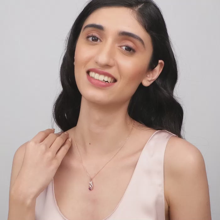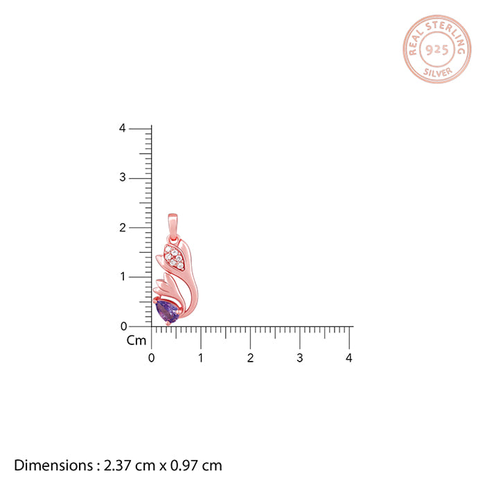 The rose gold pendant has the design of the beautiful flower Crocus with zircon embellishment on the petals and a very peri-coloured stone placed on the bottom.