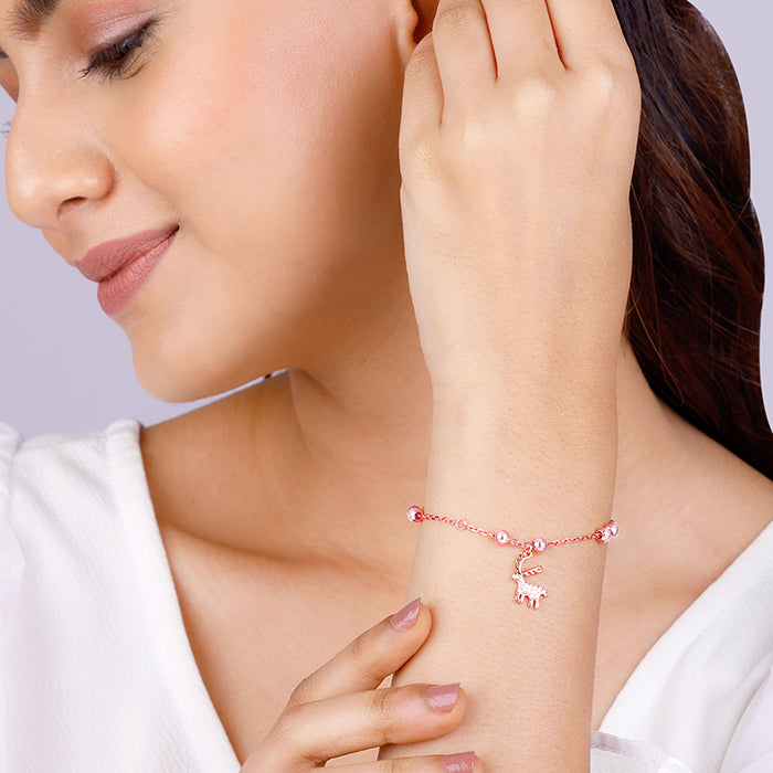 The Rose Gold Rain-love-on-your-Deer Bracelet is inspired by the love that we like to shower on our dear ones; an overwhelming feeling.