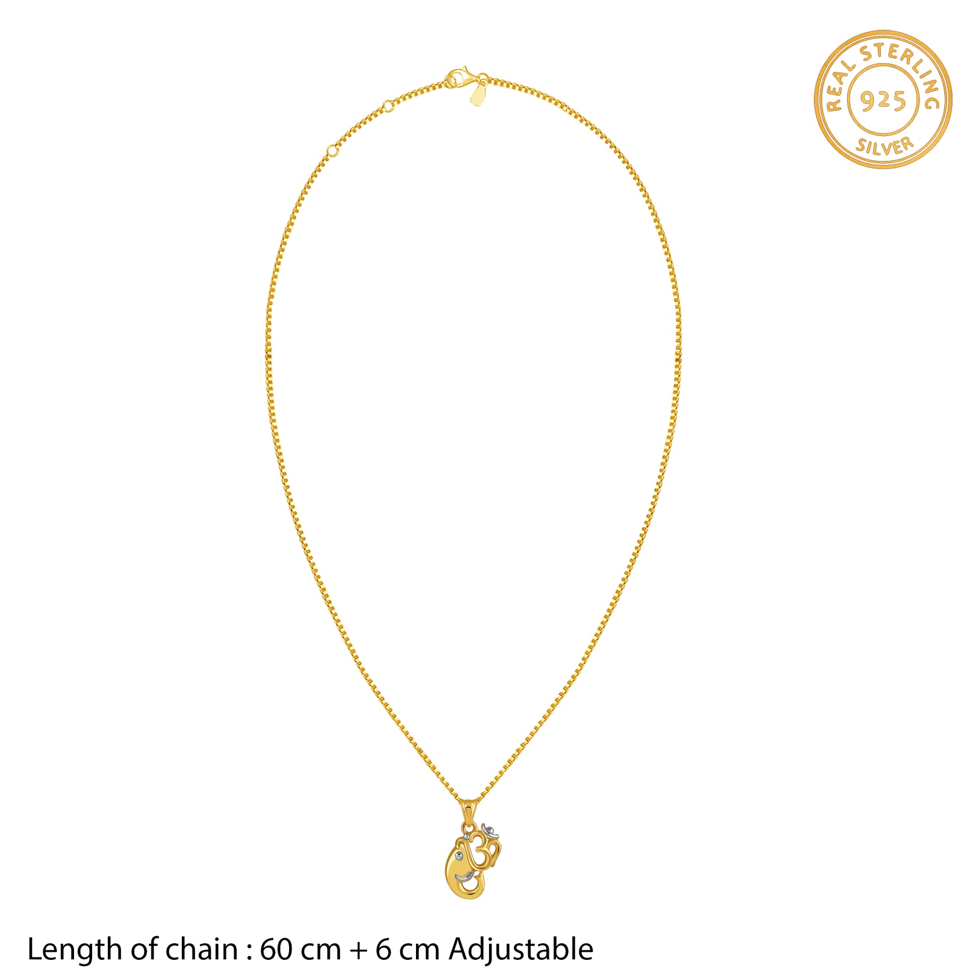 Dual Tone Om Ganesh Silver Pendant With Box Chain For Him