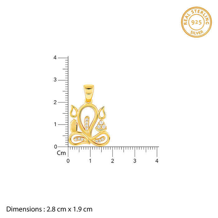 This golden pendant features a Ganesha motif outline studded strategically with zircons.