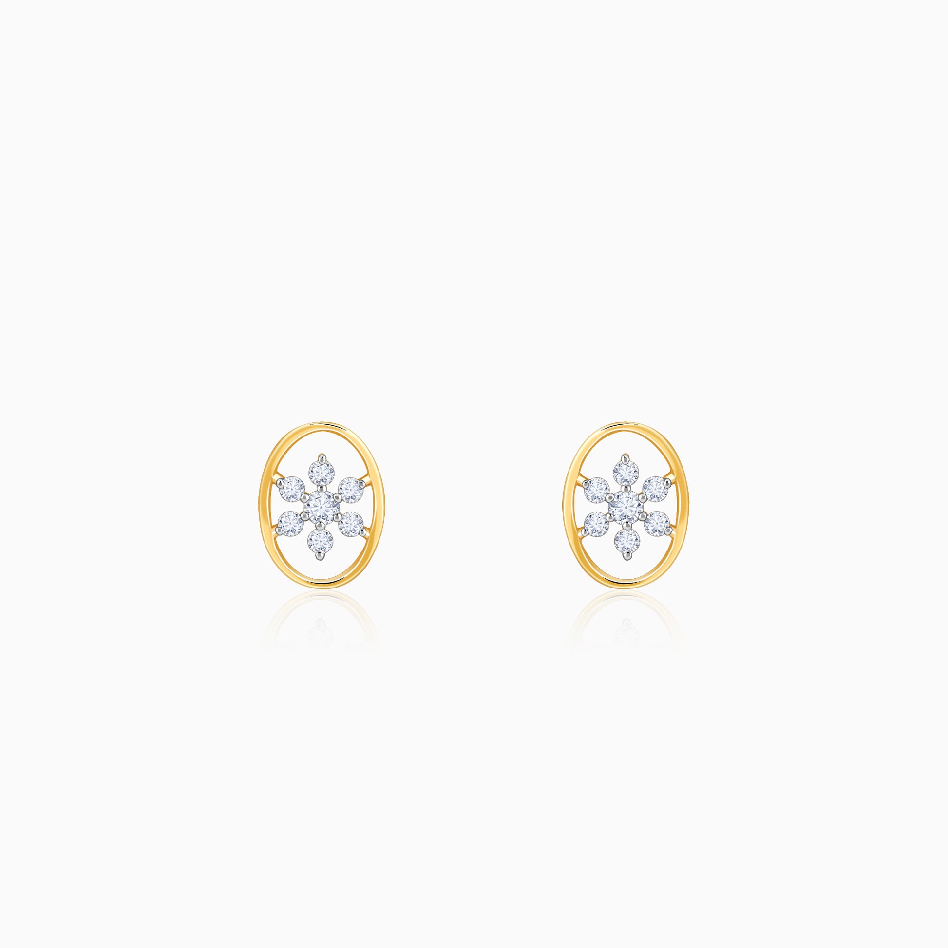 A graceful fusion of geometry and nature, these gold earrings for women feature a circular gold frame adorned with a floral motif set with lab grown diamonds. Designed for those who love understated glamour, they glimmer with every turn. Try the exquisite lab grown diamond jewellery from Heer By GIVA today.