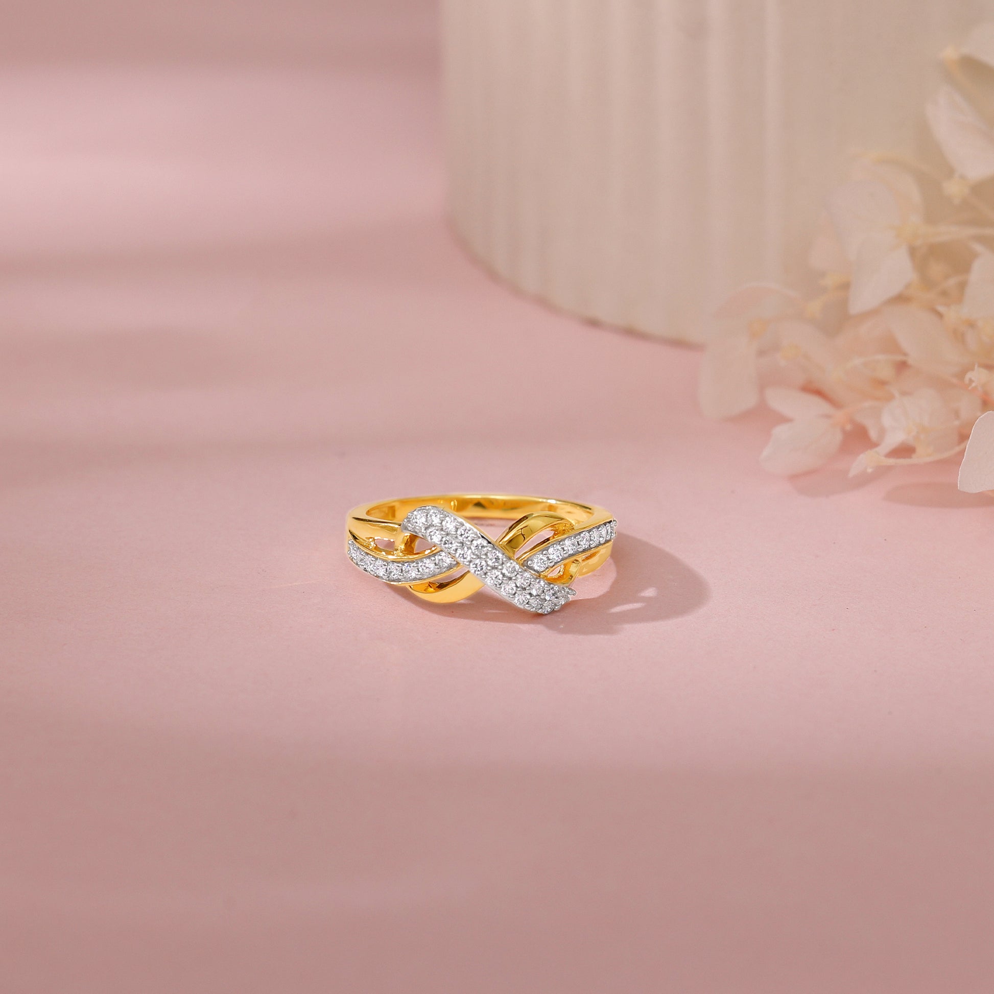 This pure gold ring features a flowing infinity motif set with sparkling lab grown diamonds.
