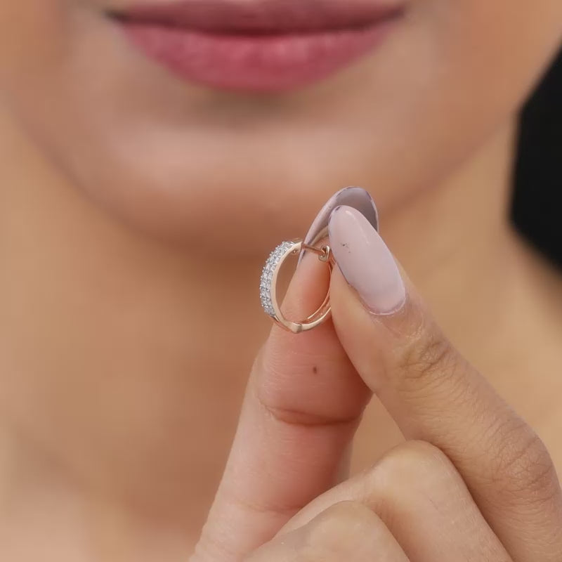 These pure rose gold earrings for women feature a huggie design beautifully set with lab-grown diamonds.