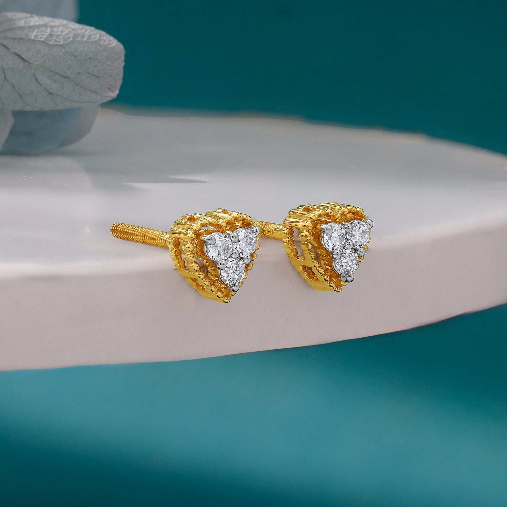 These heart-shaped gold earrings with a sparkling lab grown diamond at the centre are made for the woman who wears her confidence and warmth openly, embracing charm and sophistication in every detail. Try the exquisite lab grown diamond jewellery from Heer By GIVA today.