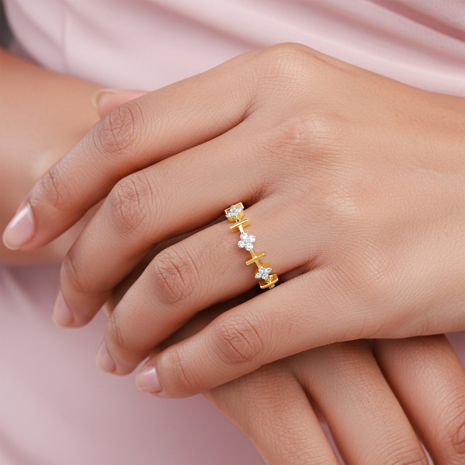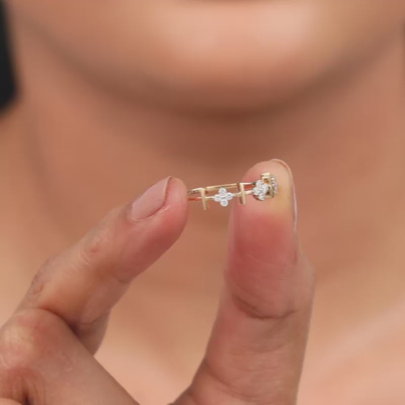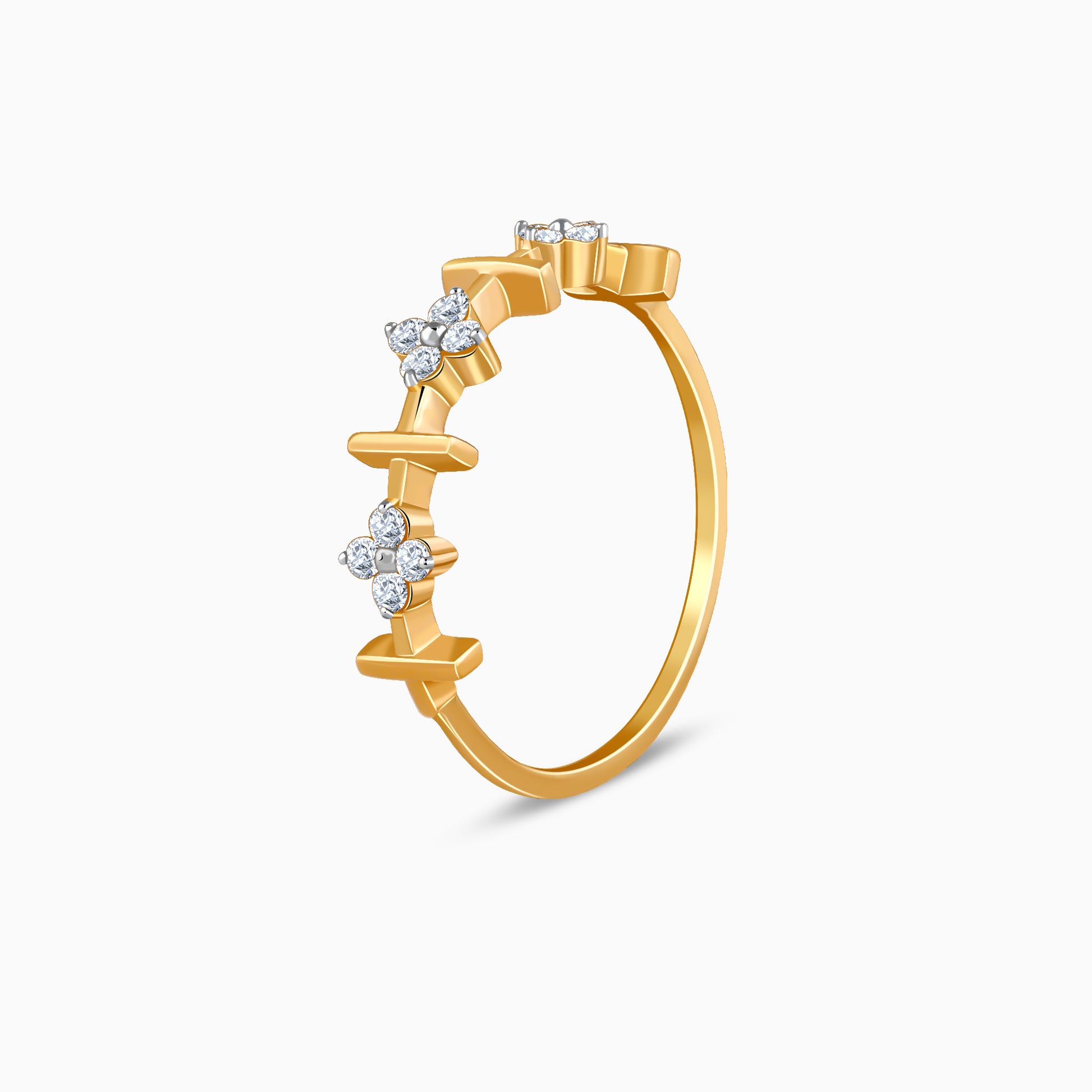 A gold ring where gentle spokes curl towards a floral heart, each petal studded with lab grown diamonds that shimmer like morning dew. Made for the woman whose grace turns moments into poetry. Try the exquisite lab grown diamond jewellery from Heer By GIVA today.