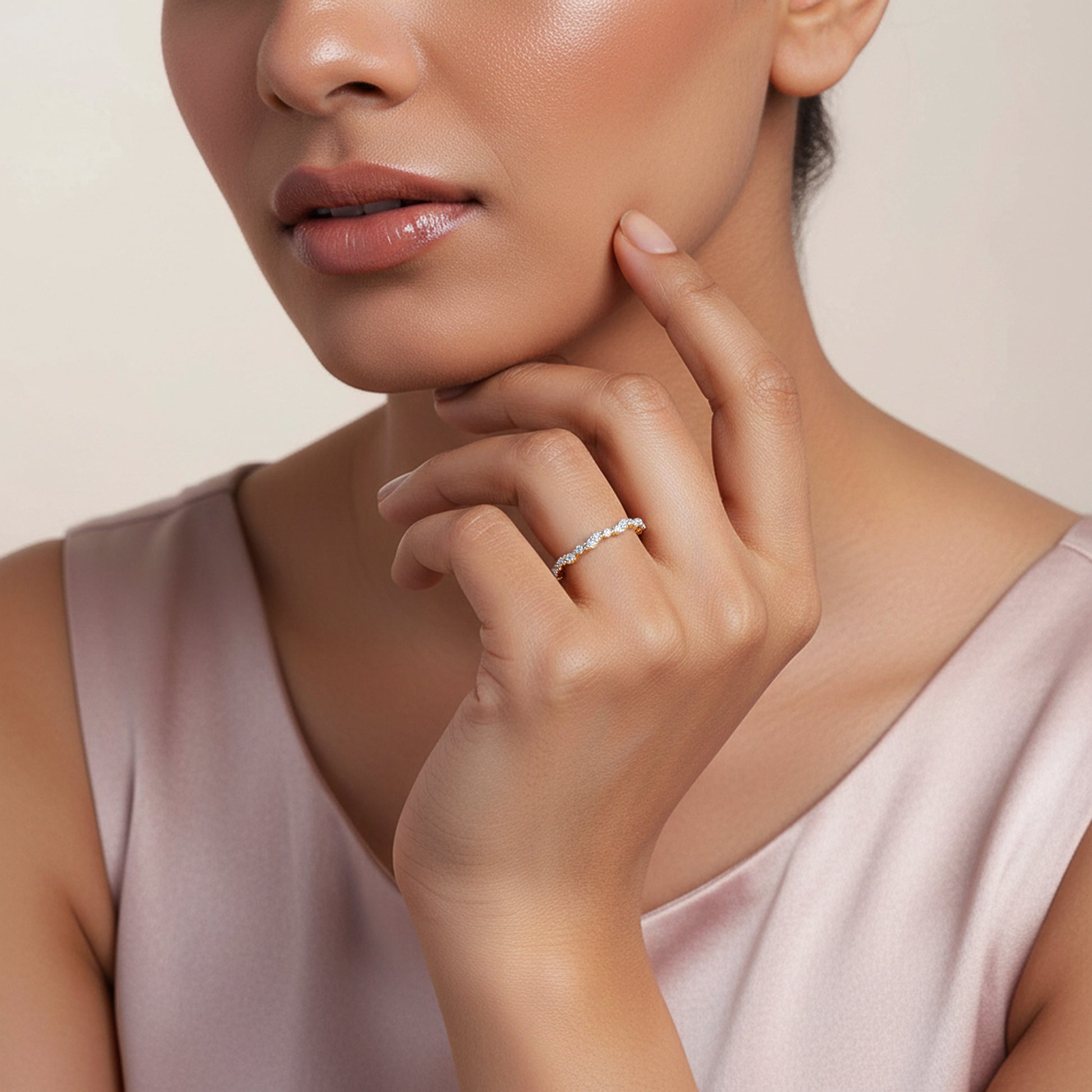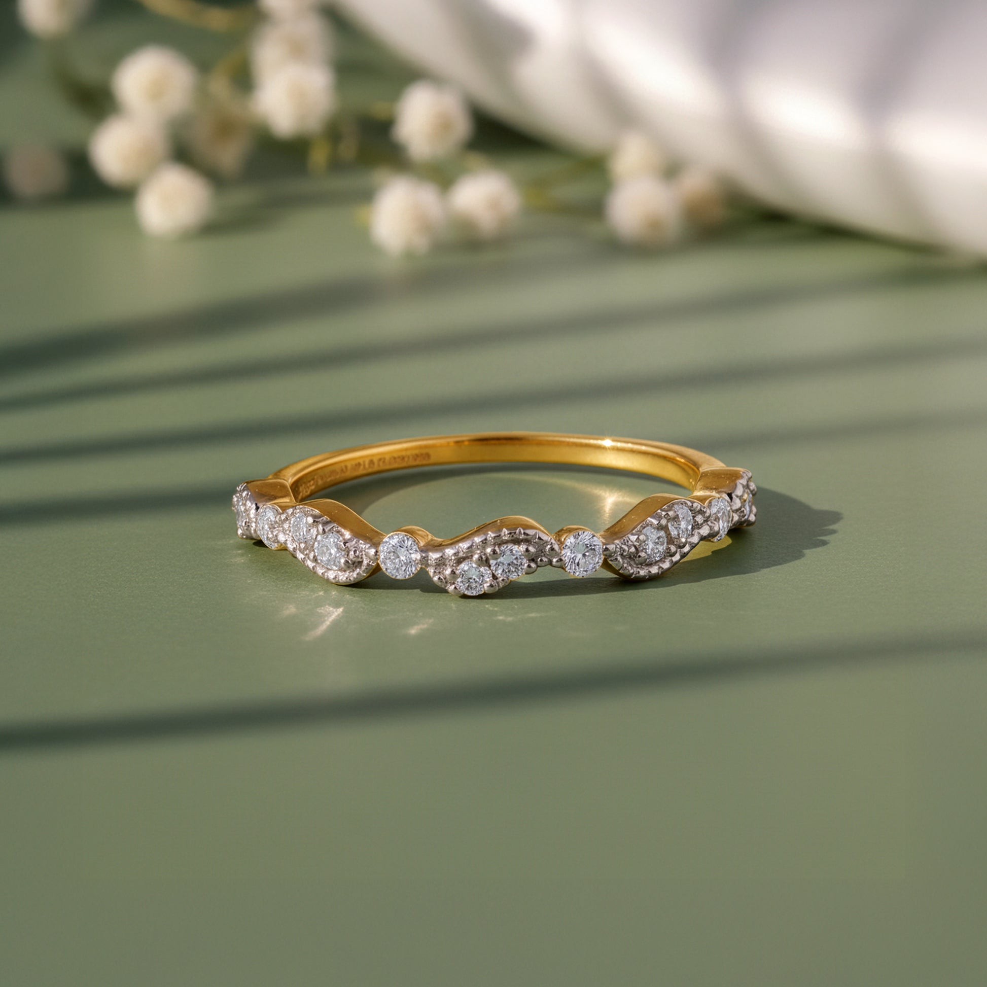 Let this gold ring be a gentle reminder that life flows in graceful curves. Its wavy design, studded with sparkling lab grown diamonds, mirrors the ebbs and flows of her journey moments of quiet strength, soft victories, and shining triumphs. Try the exquisite lab grown diamond jewellery from Heer By GIVA today.