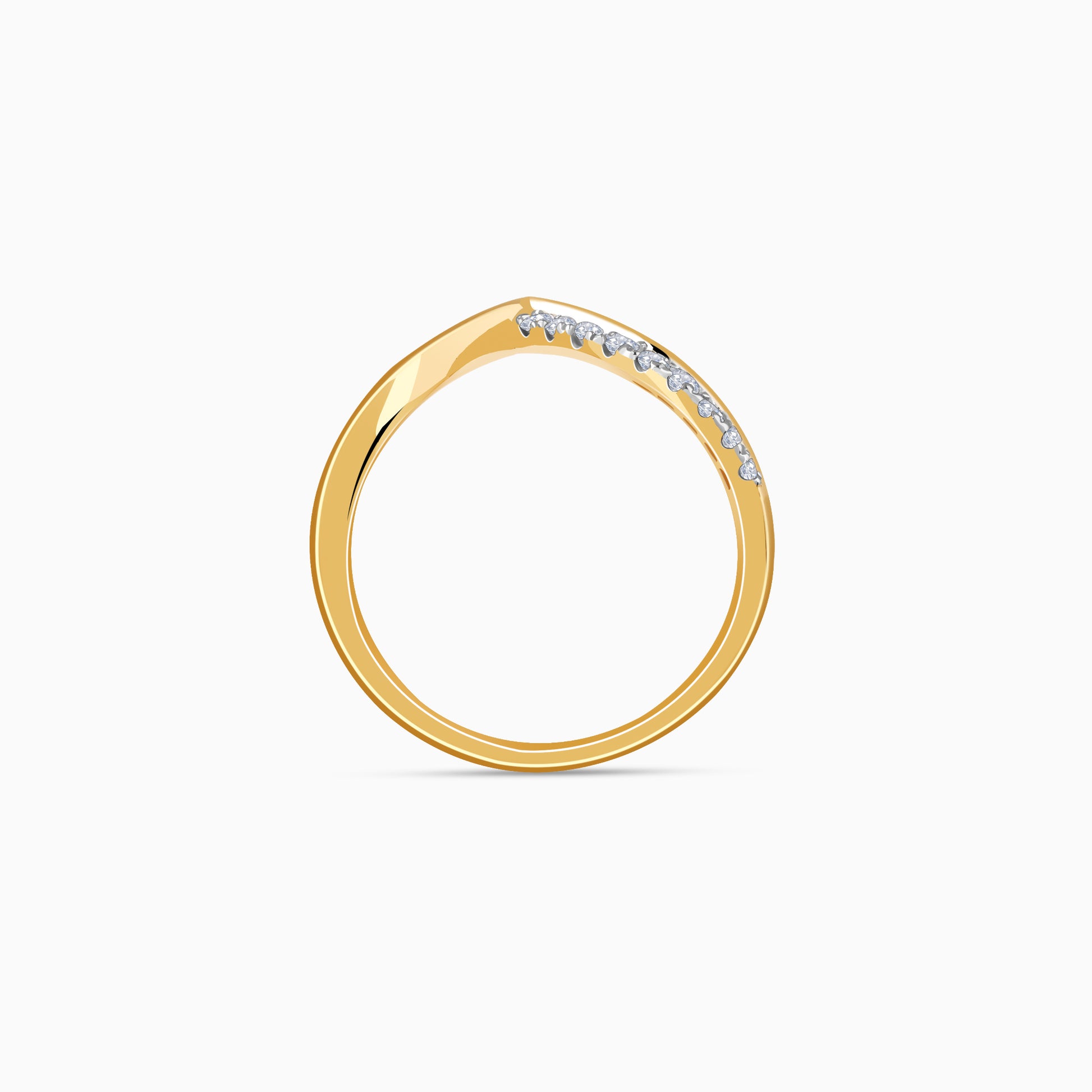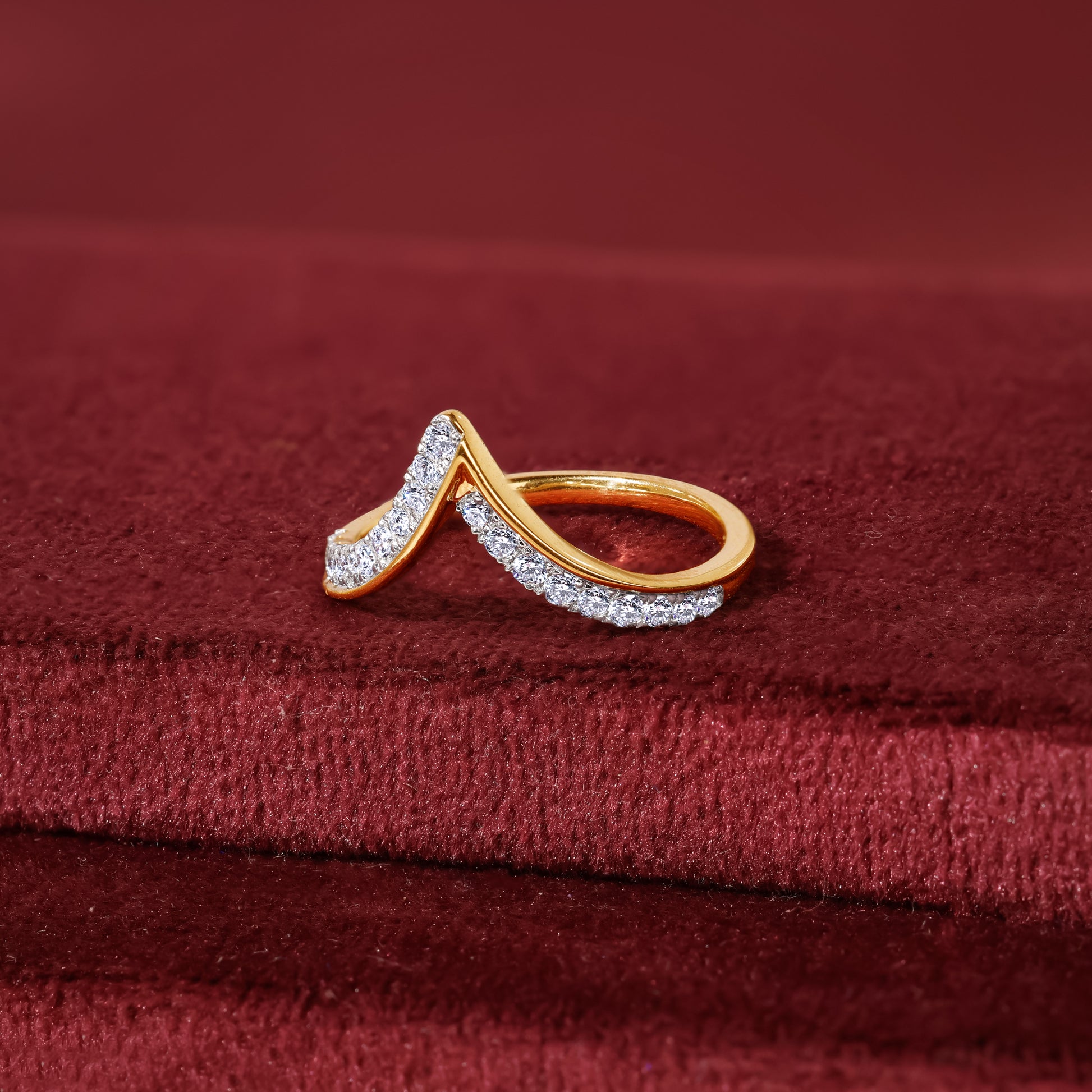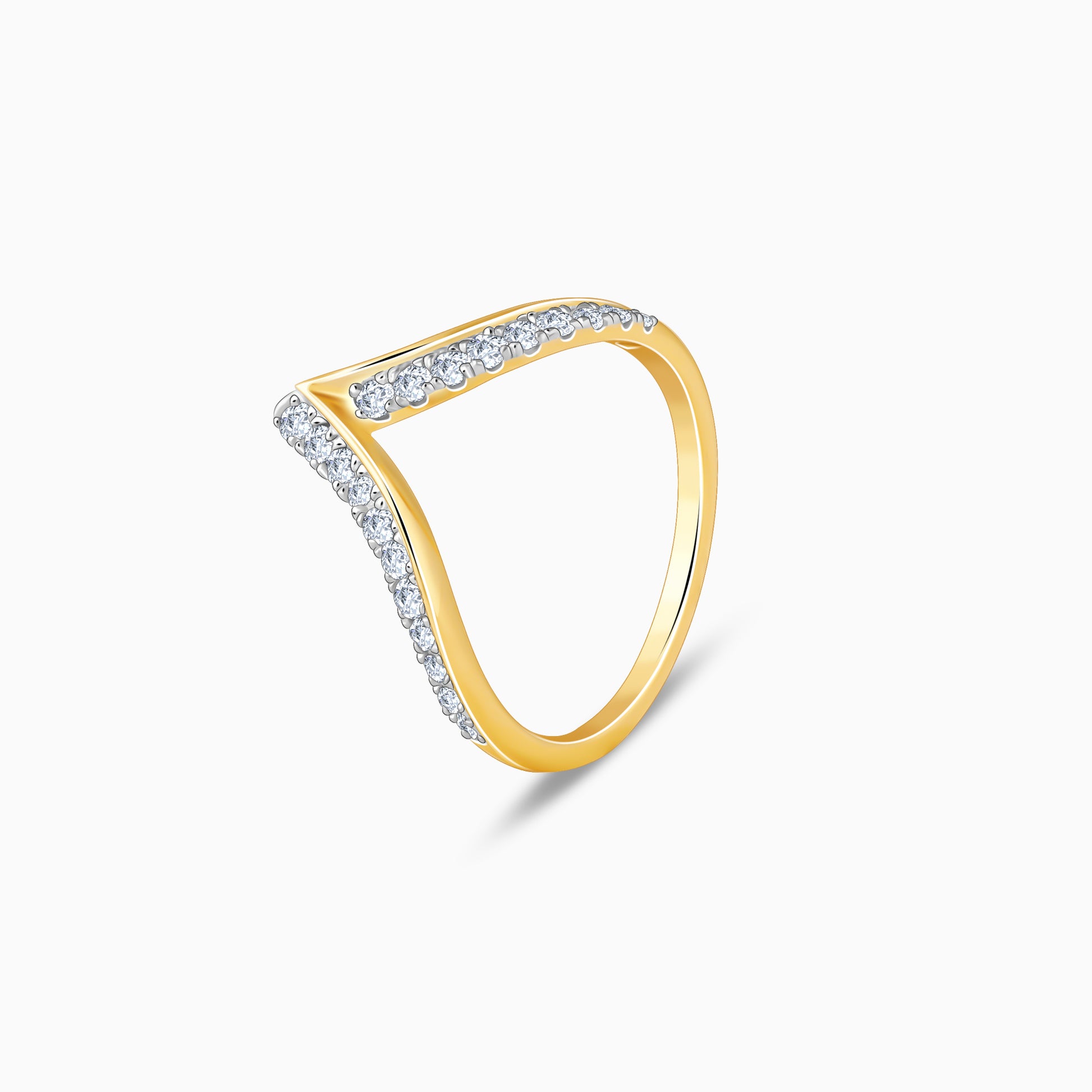 This gold ring for women features a V-shaped band giving an inverted vanki style. The centre of the gold band is paved with lab grown diamonds.