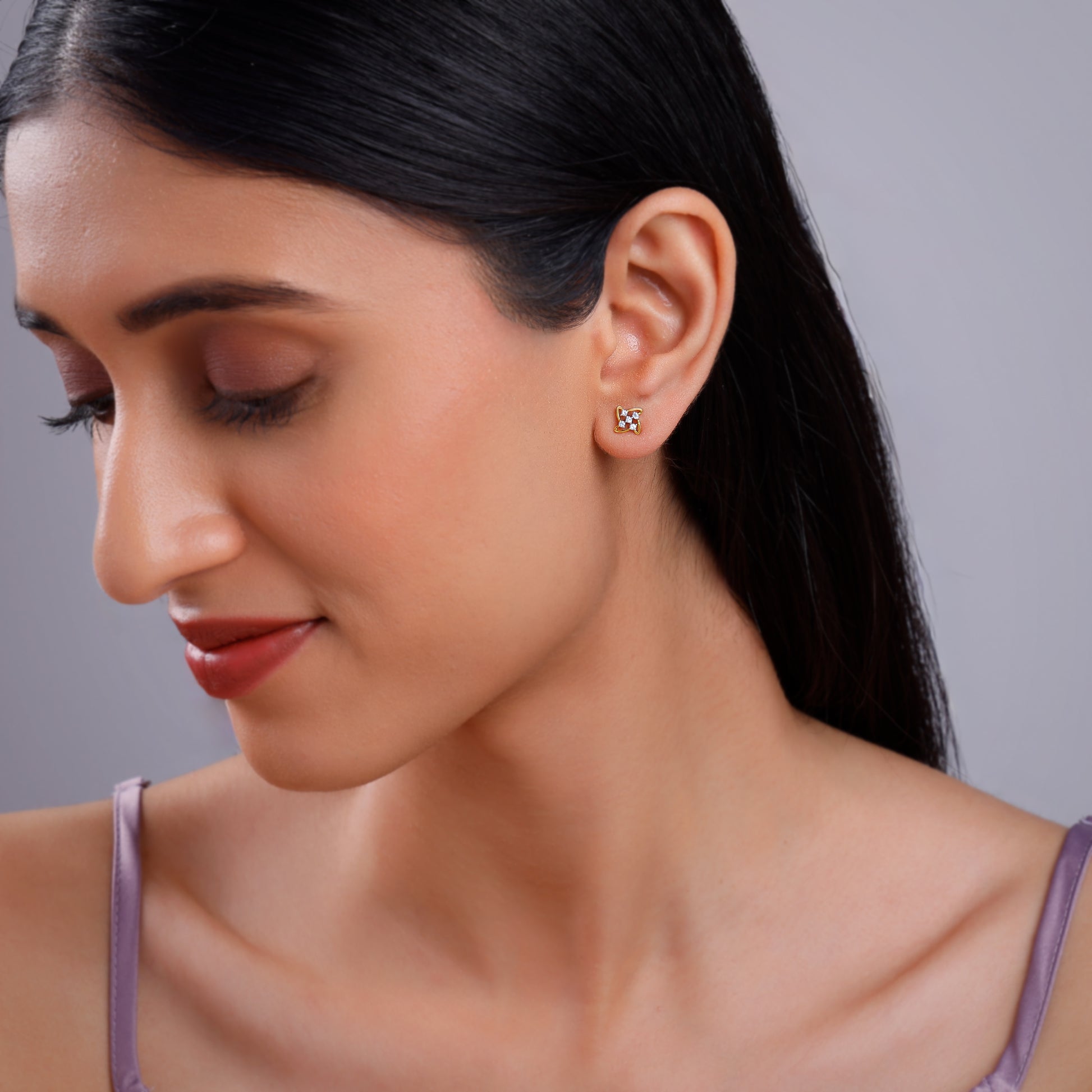 Minimal design, maximum charm. These pure gold studs for women let your confidence sparkle in every room with their spinning design set with lab grown diamonds. Try the exquisite lab grown diamond jewellery from Heer By GIVA today.