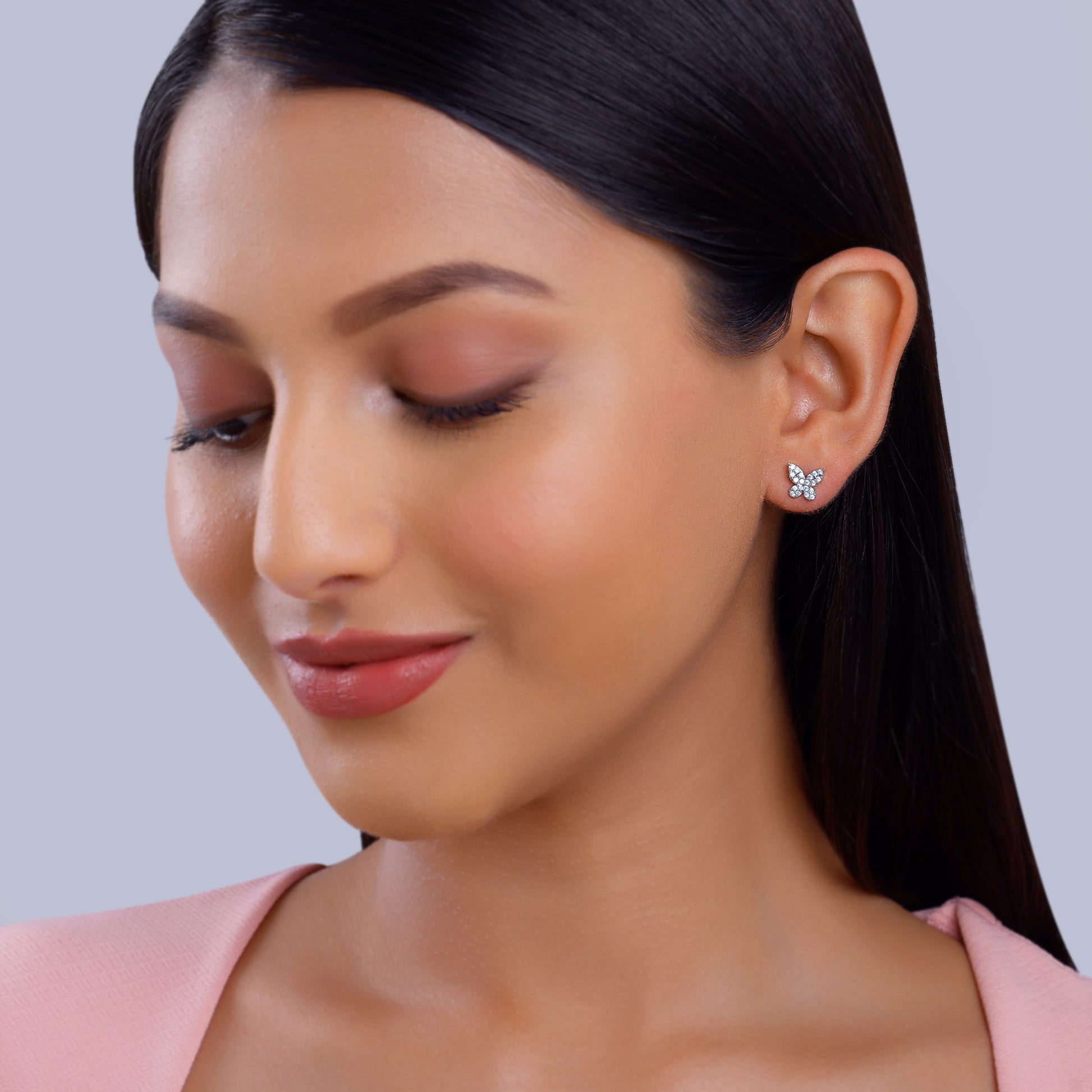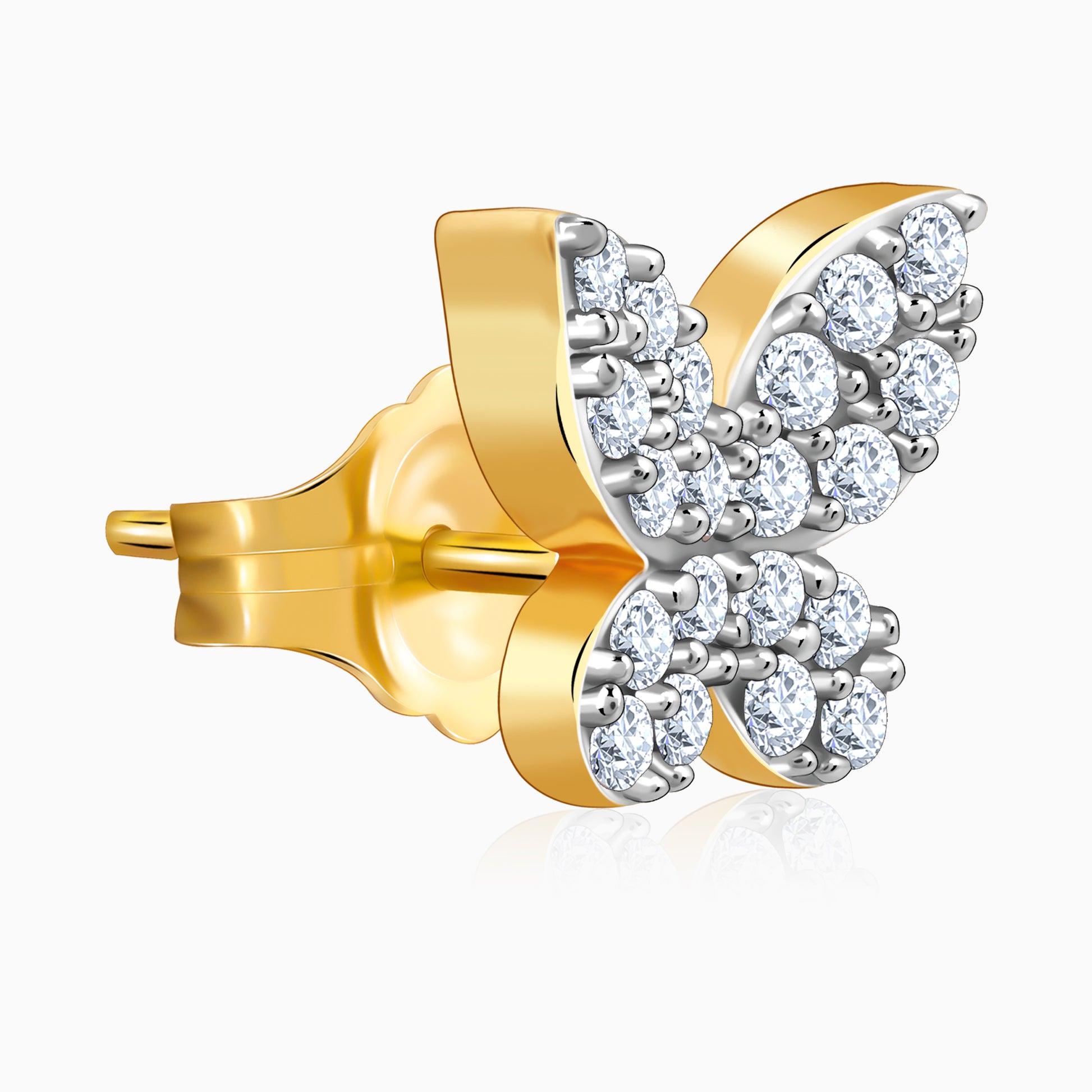 These pure gold earrings feature a cute butterfly motif set with lab grown diamonds.
