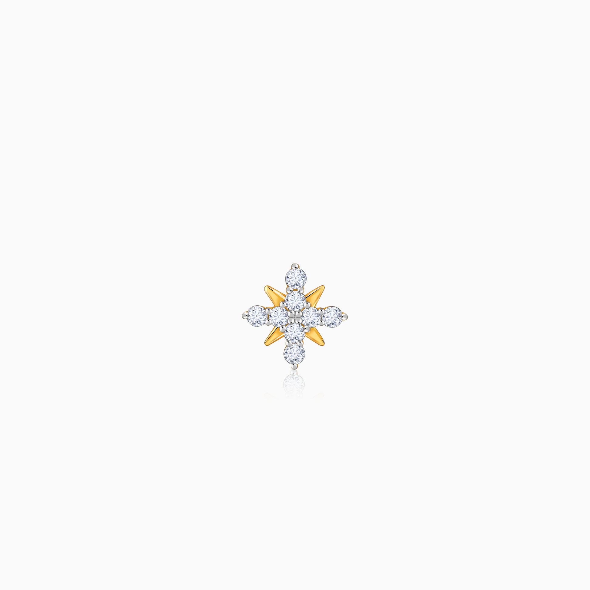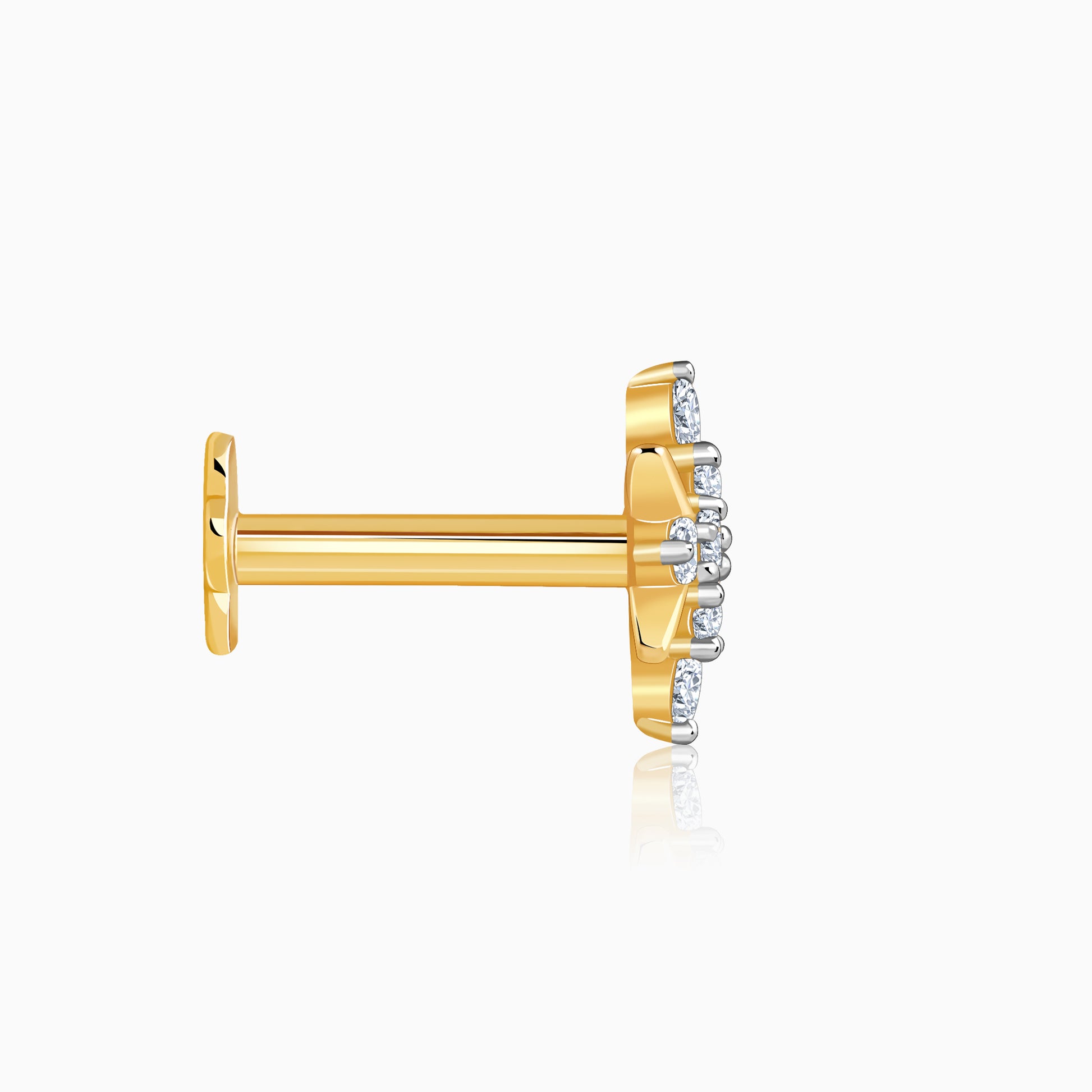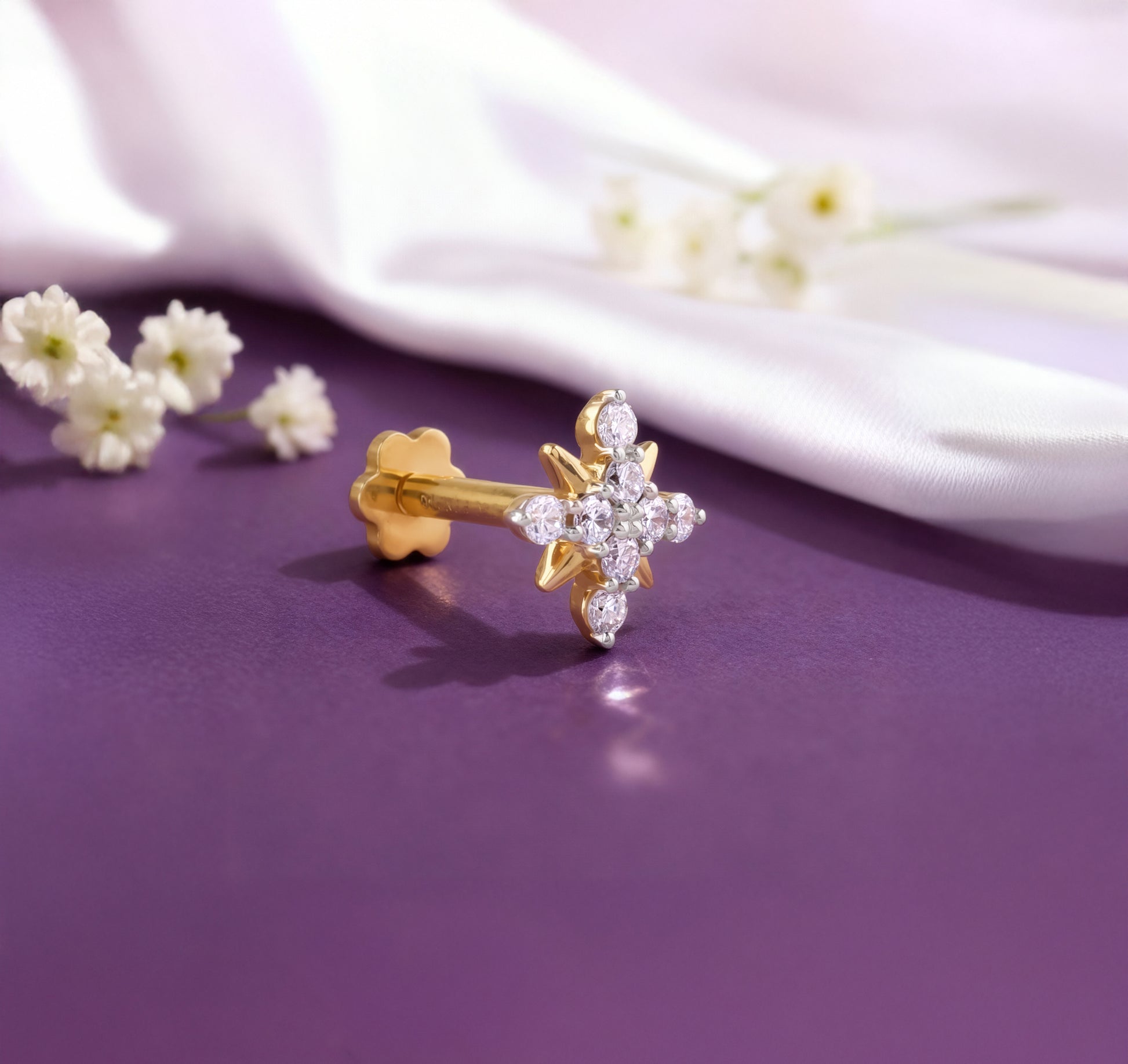 For the woman who makes her own rules. This bold X-shaped gold nosepin, with lab grown diamonds slashing across one line, is a symbol of striking individuality and effortless style. Try the exquisite lab grown diamond jewellery from Heer By GIVA today.