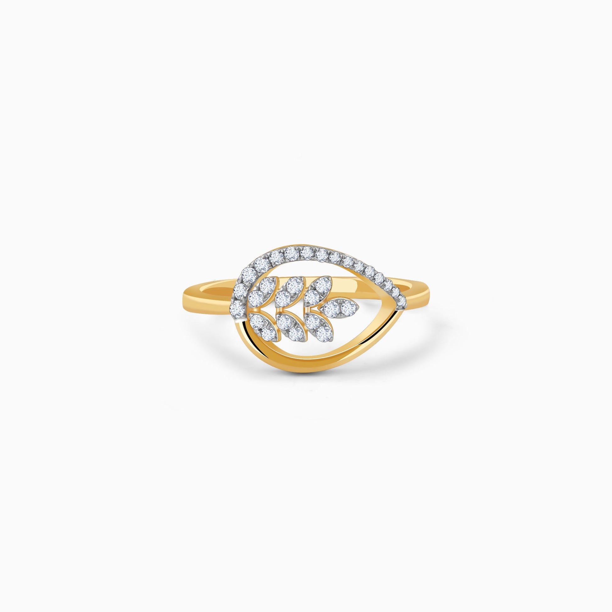 This pure gold ring features a leaf motif with an intricate design studded with lab grown diamonds.