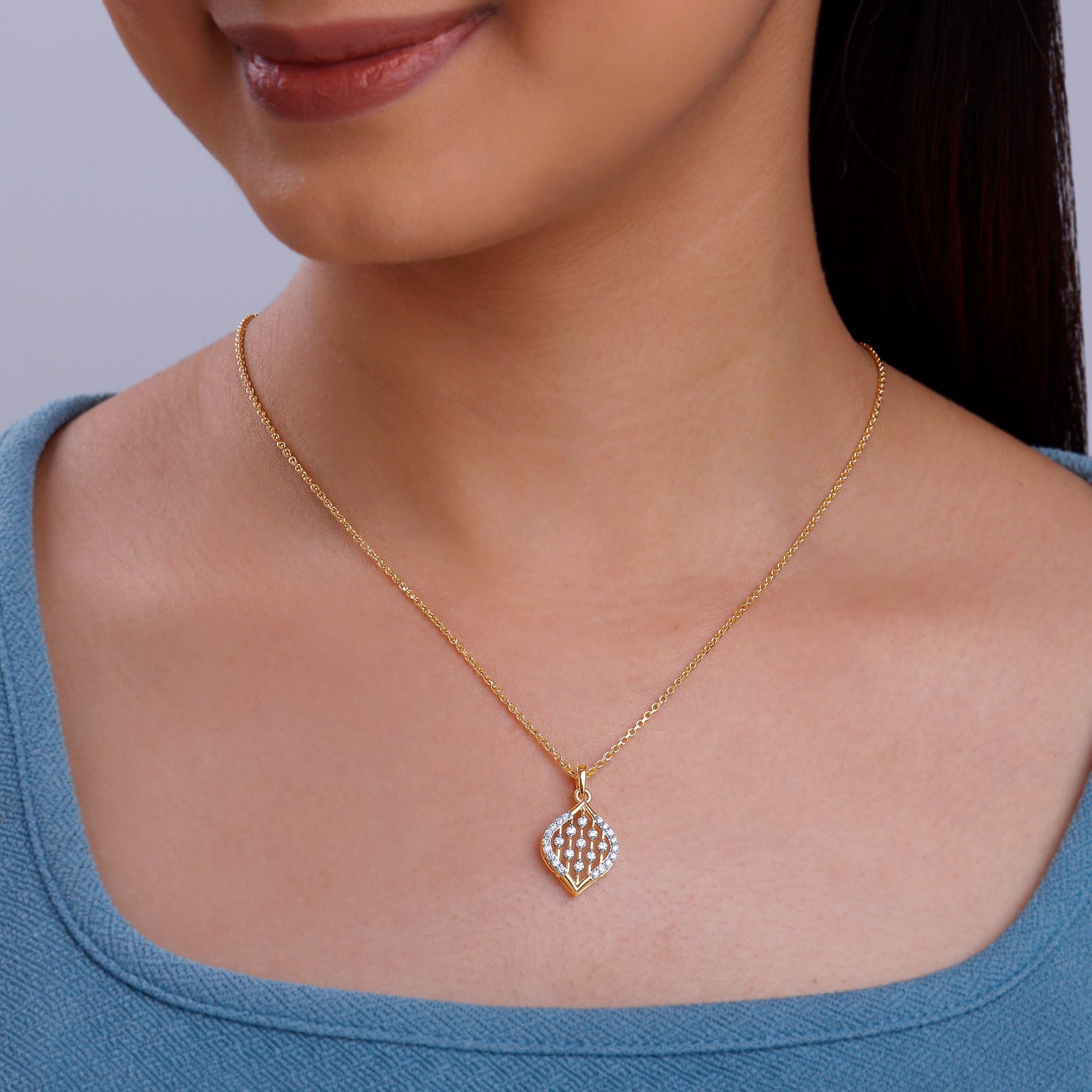 This pure gold pendant boasts an elegant design with intricate detailing and is adorned with lab-grown diamonds.