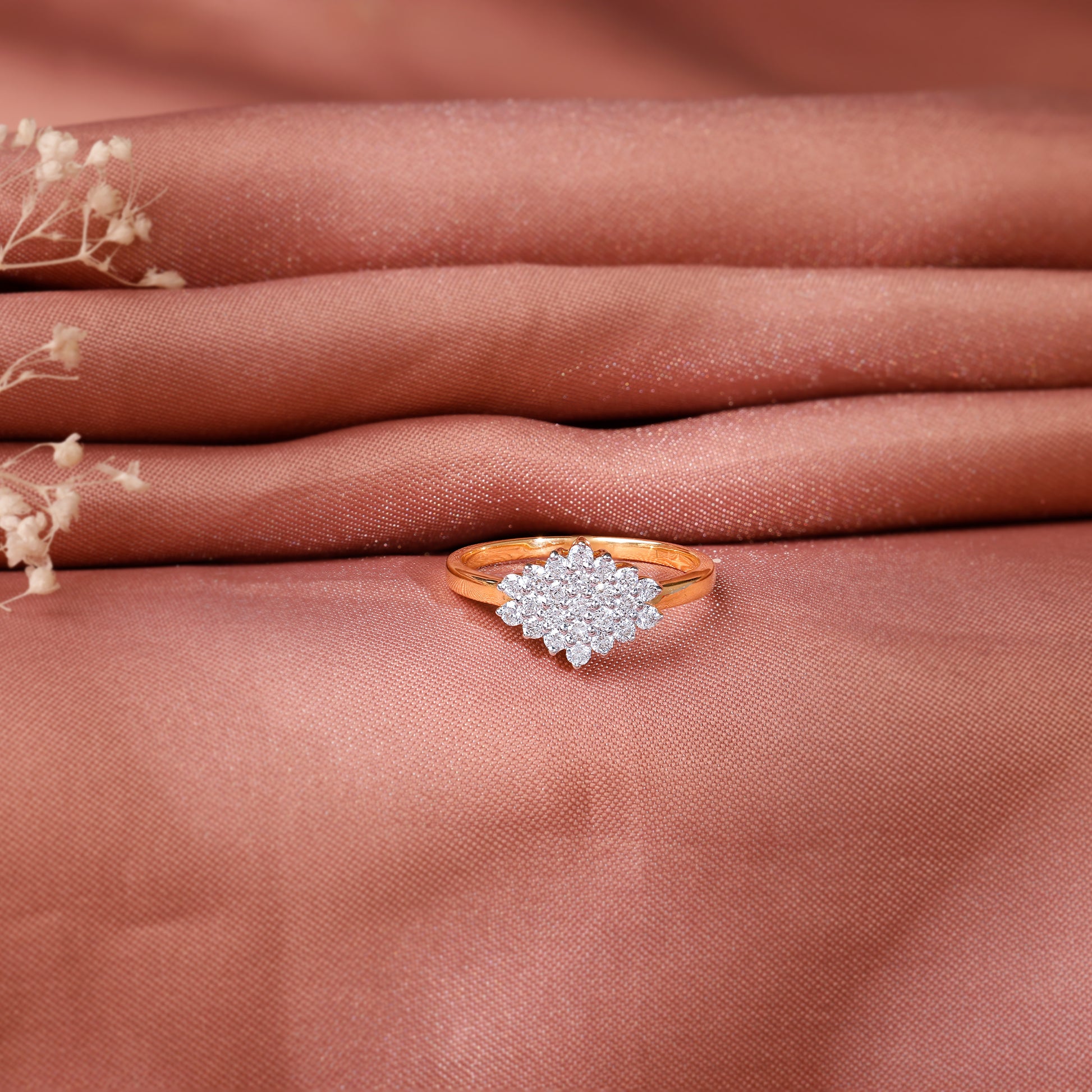 This pure gold ring for women features a cluster of lab grown diamonds, intricately set to create a powerful burst of brilliance.