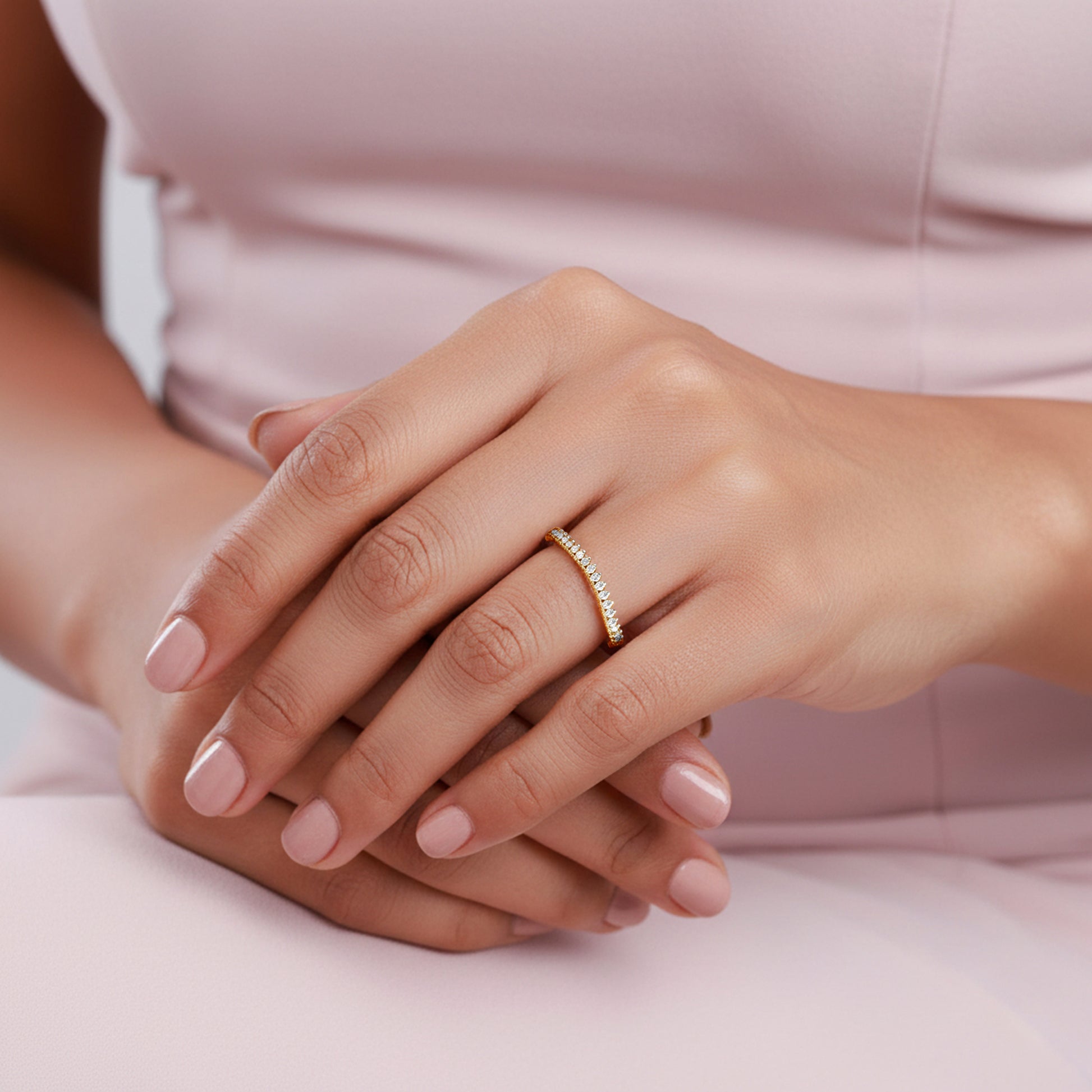 A gold ring where each lab grown diamond is elegantly embraced in a bezel setting, radiating quiet brilliance with every movement. Designed for the woman whose confidence is understated yet undeniable. Try the exquisite lab grown diamond jewellery from Heer By GIVA today.